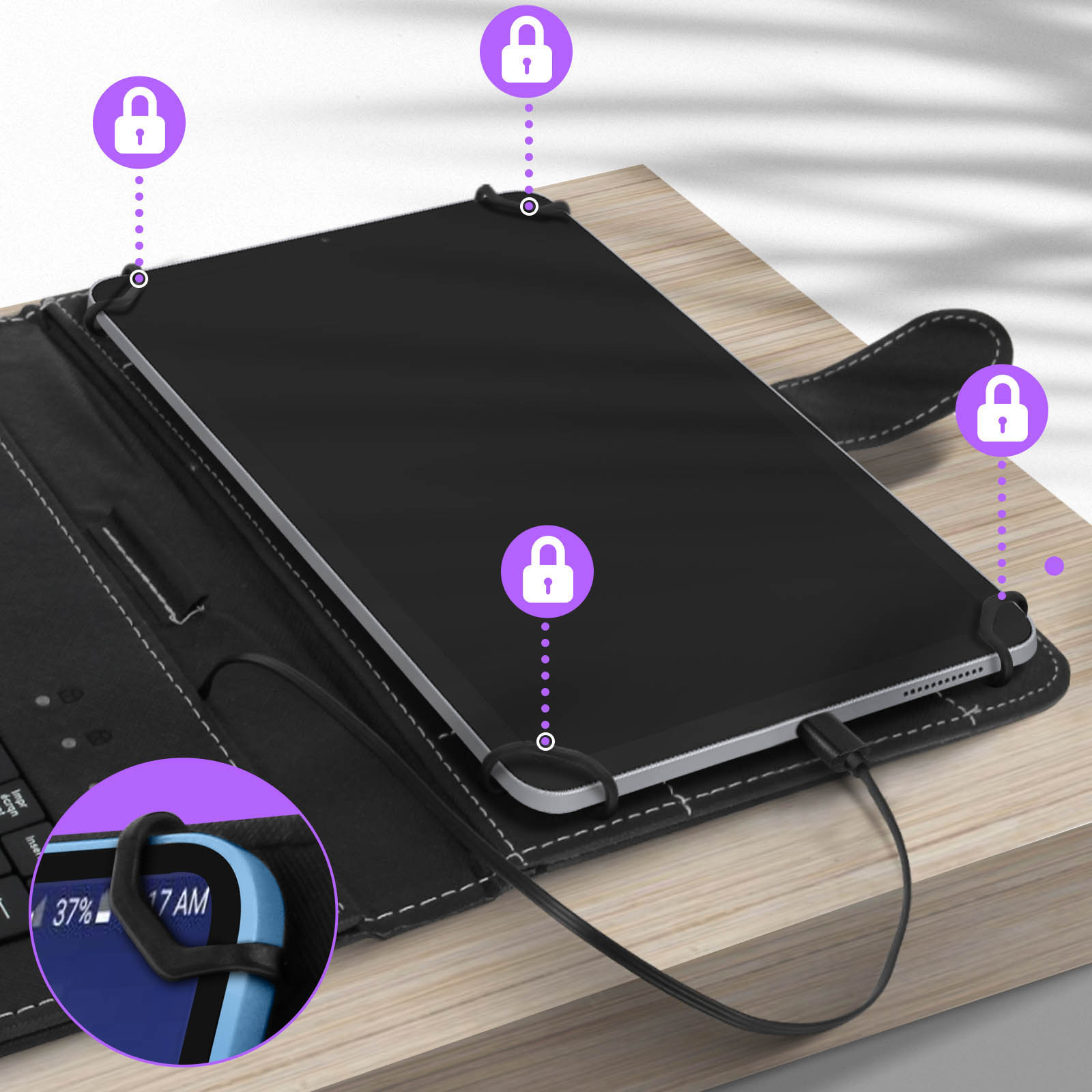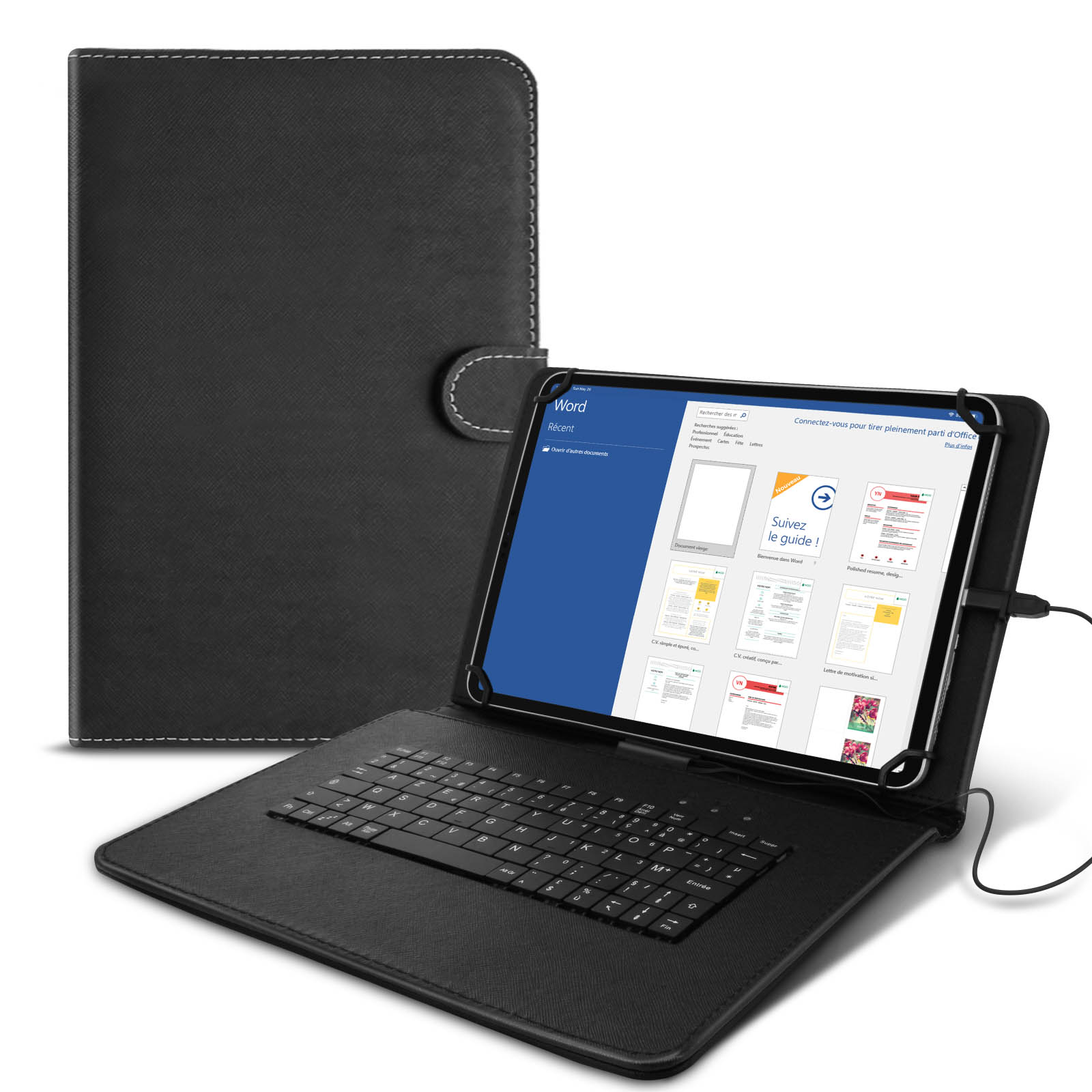 Housse Tablette 10 pouces avec Clavier AZERTY USB-C Fonction Support Noir