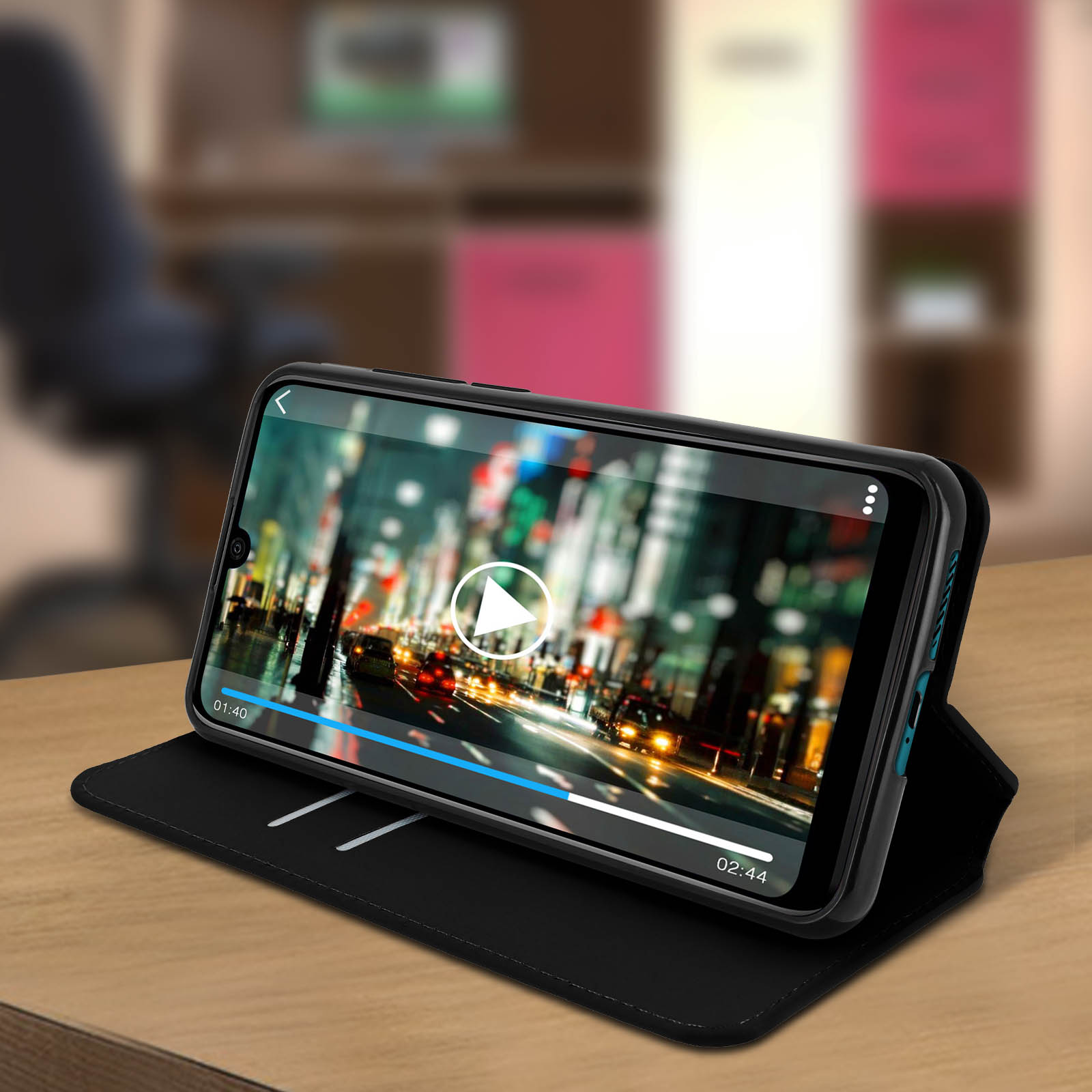 Housse Wiko View 3 Folio Portefeuille Fonction Support noir