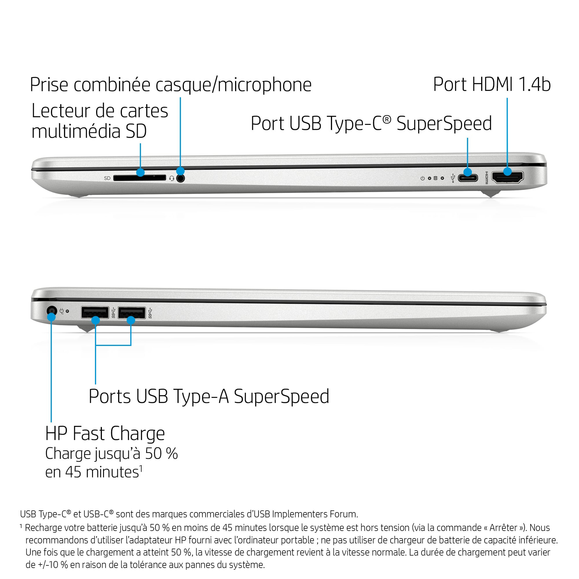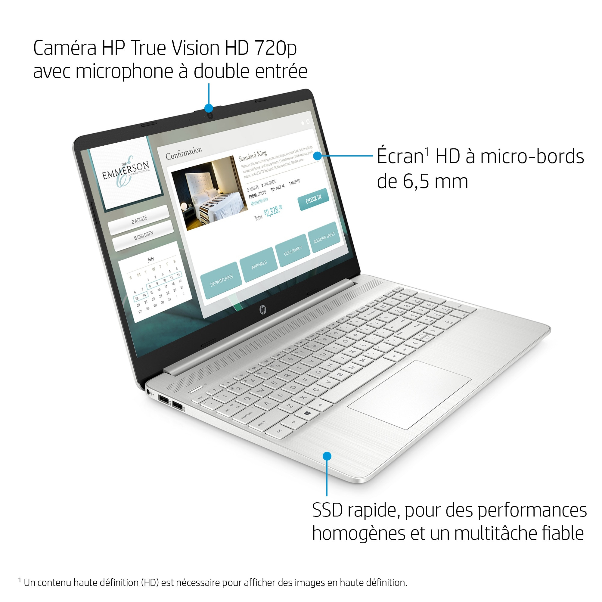 | Libellé | HP 15s-eq2097nf AMD Ryzen™ 7 5700U Ordinateur portable 39,6 cm (15.6") Full HD 16 Go DDR4-SDRAM 512 Go SSD Wi-Fi 5 (802.11ac) Windows 11 Home Argent |