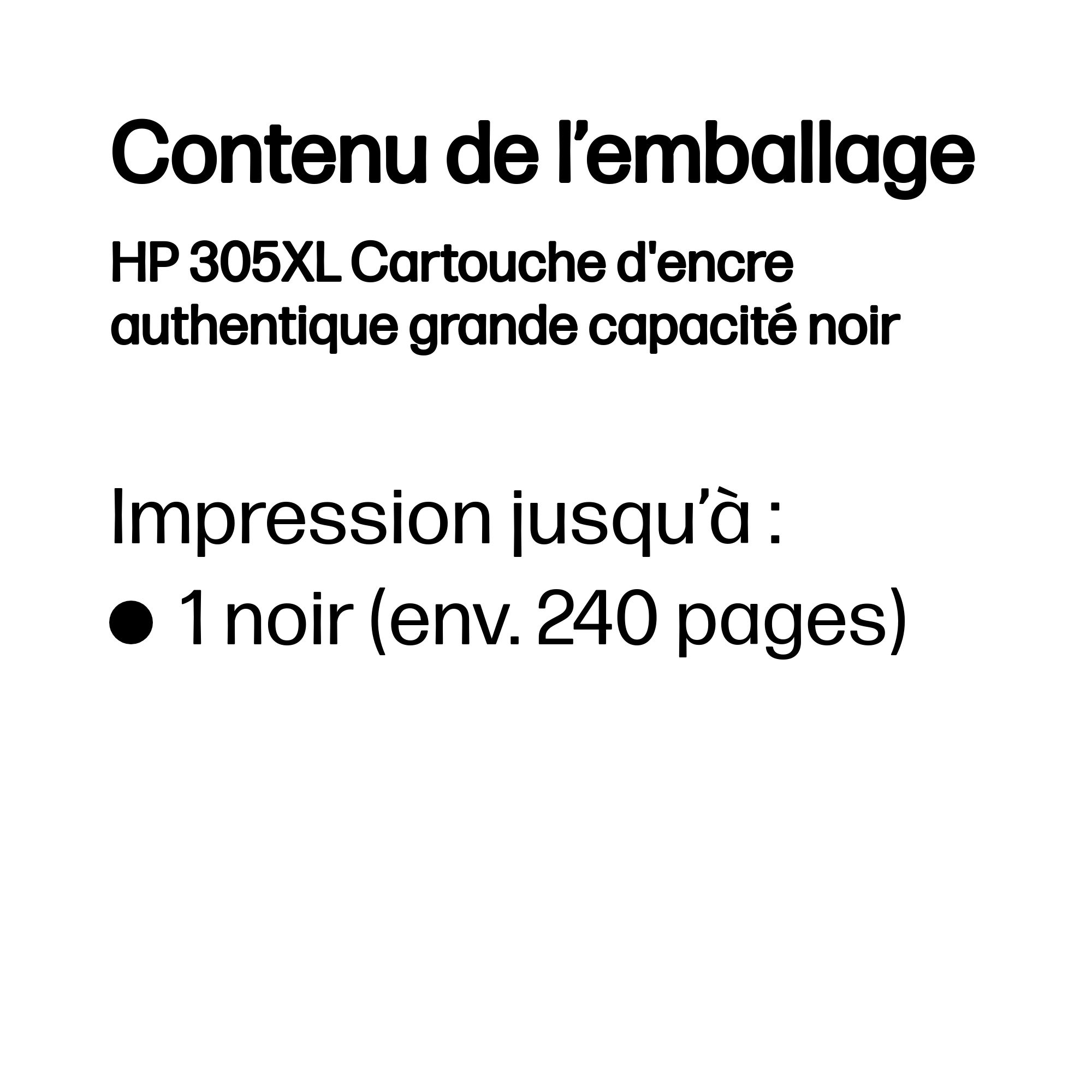 | Libellé | HP 305XL Cartouche d'encre authentique grande capacité noir |