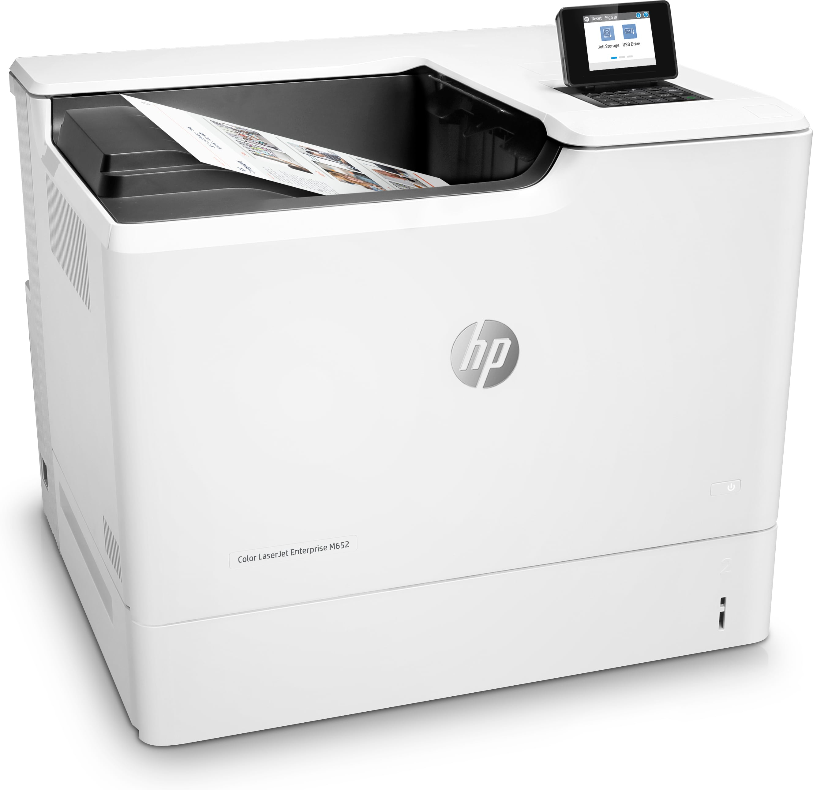 HP Color LaserJet Enterprise M652n, Imprimer. Technologie d'impression: Laser, Couleur. Nombre de cartouches d'impression: 4, Cycle de service (Maximum): 100000 pages par mois. Résolution maximale: 1200 x 1200 DPI. Taille de papier de série A ISO maximum: A4. Vitesse d'impression (noir, qualité normale, A4/US Letter): 50 ppm, Impression recto-verso. Écran: LCD, Couleur du produit: Blanc