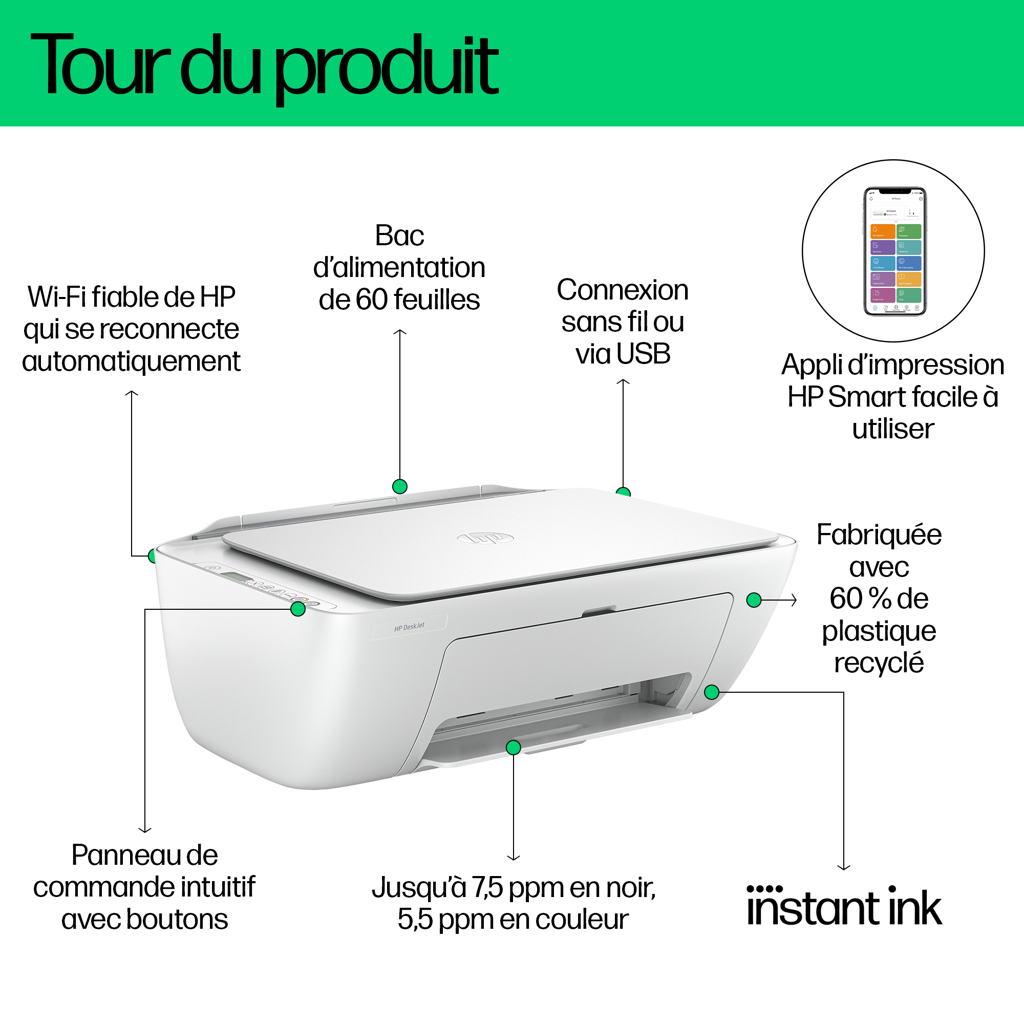 Le leader de l’impression simple et sereine.[1] Gagnez en fluidité pour imprimer, numériser et copier, via l’imprimante sans fil compacte à domicile, associée à la meilleure application d’impression facile d’utilisation. Que ce soit pour vos étiquettes d’expédition ou vos meilleures recettes, facilitez-vous la vie avec le leader mondial de l’impression[2,3].. Compatibilité HP Instant Ink