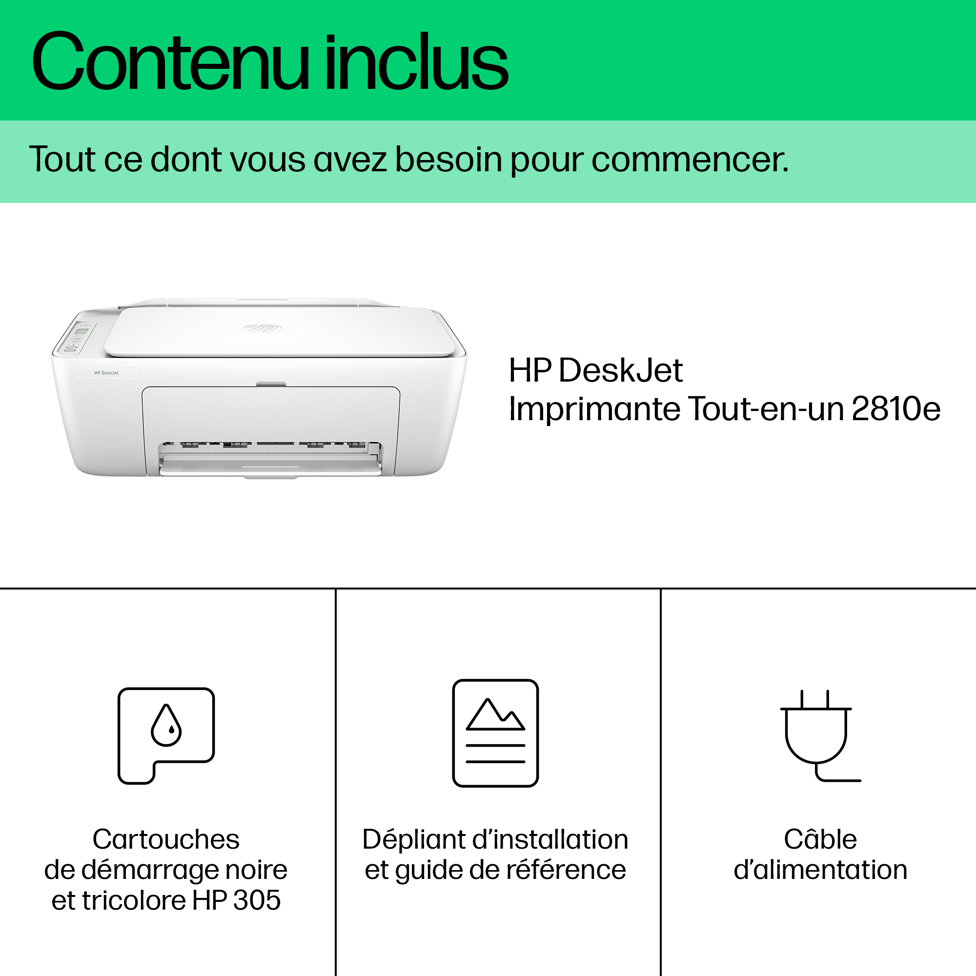 | Libellé | HP DeskJet 2810e Sans fil All-in-One Couleur Imprimante, Instant Ink; copieur, scanner |