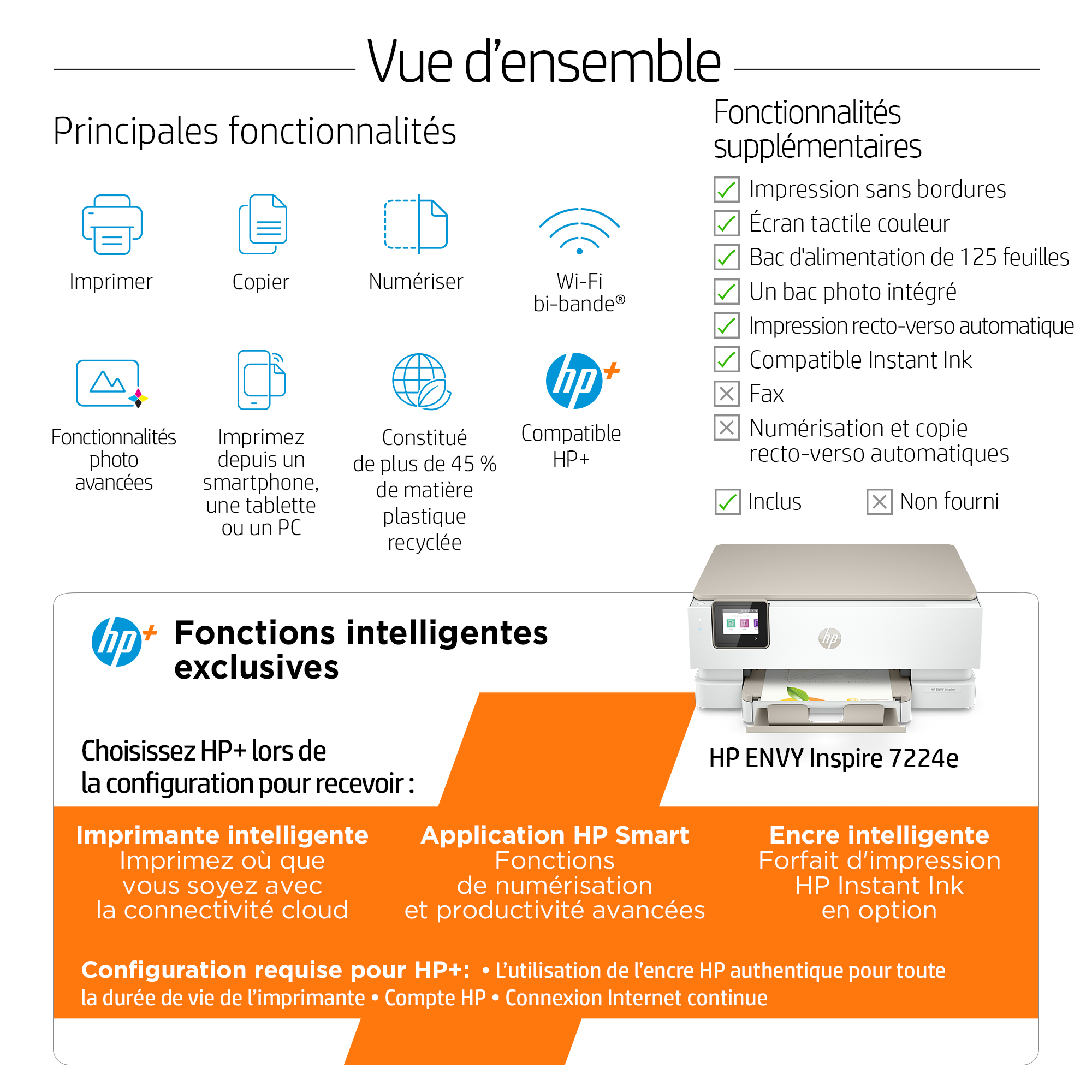 | Libellé | HP ENVY Inspire 7224e Sans fil All-in-One Couleur Imprimante, Instant Ink; copieur, scanner |