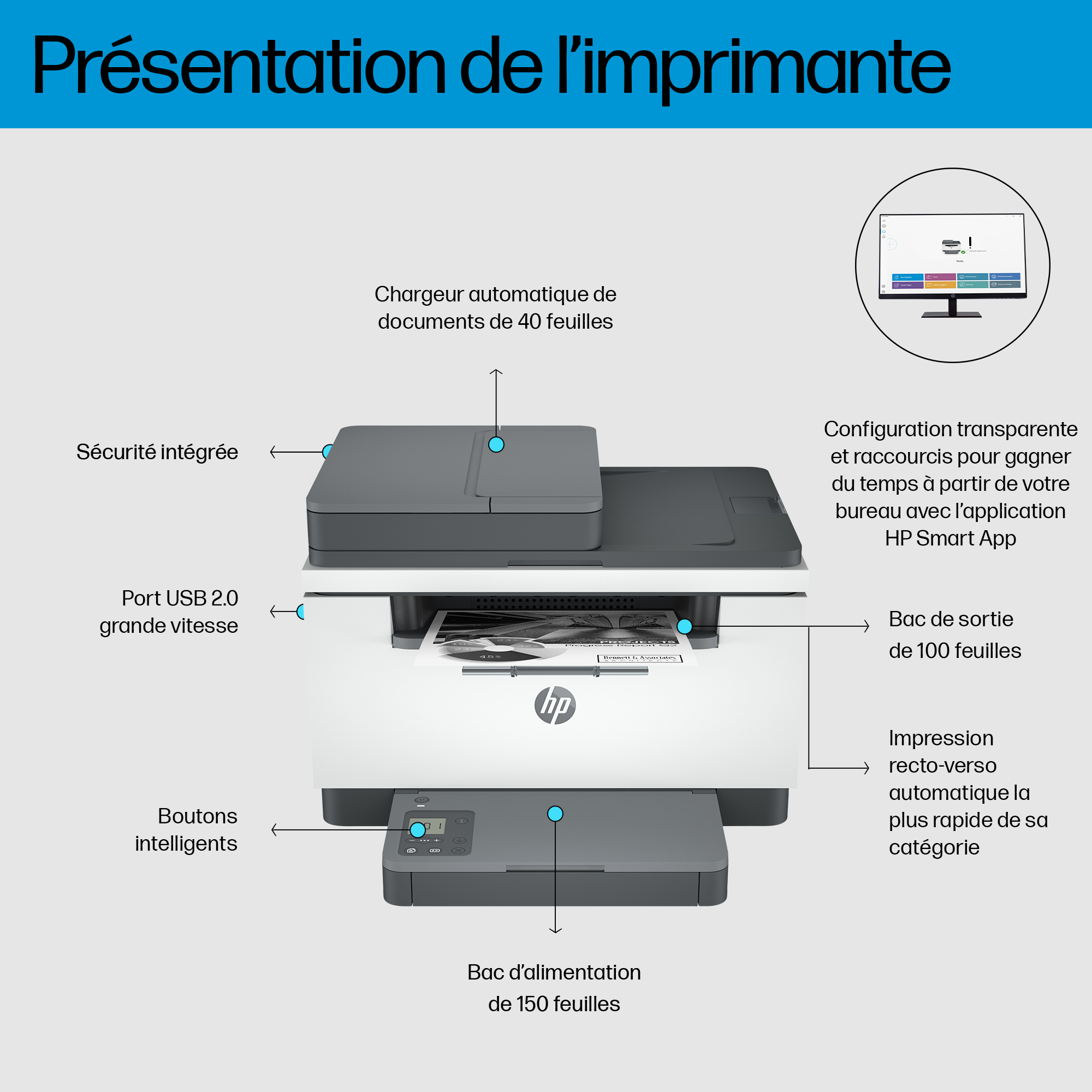 Super productifs. Super compacts. Une imprimante multifonction haute productivité dotée de l’impression recto-verso la plus rapide de sa catégorie,[2] un chargeur automatique et l’application HP qui vous fait gagner du temps.[6][7] Vous pouvez compter sur une expérience sans tracas avec la configuration simplifiée.. Cartouche HP JetIntelligence