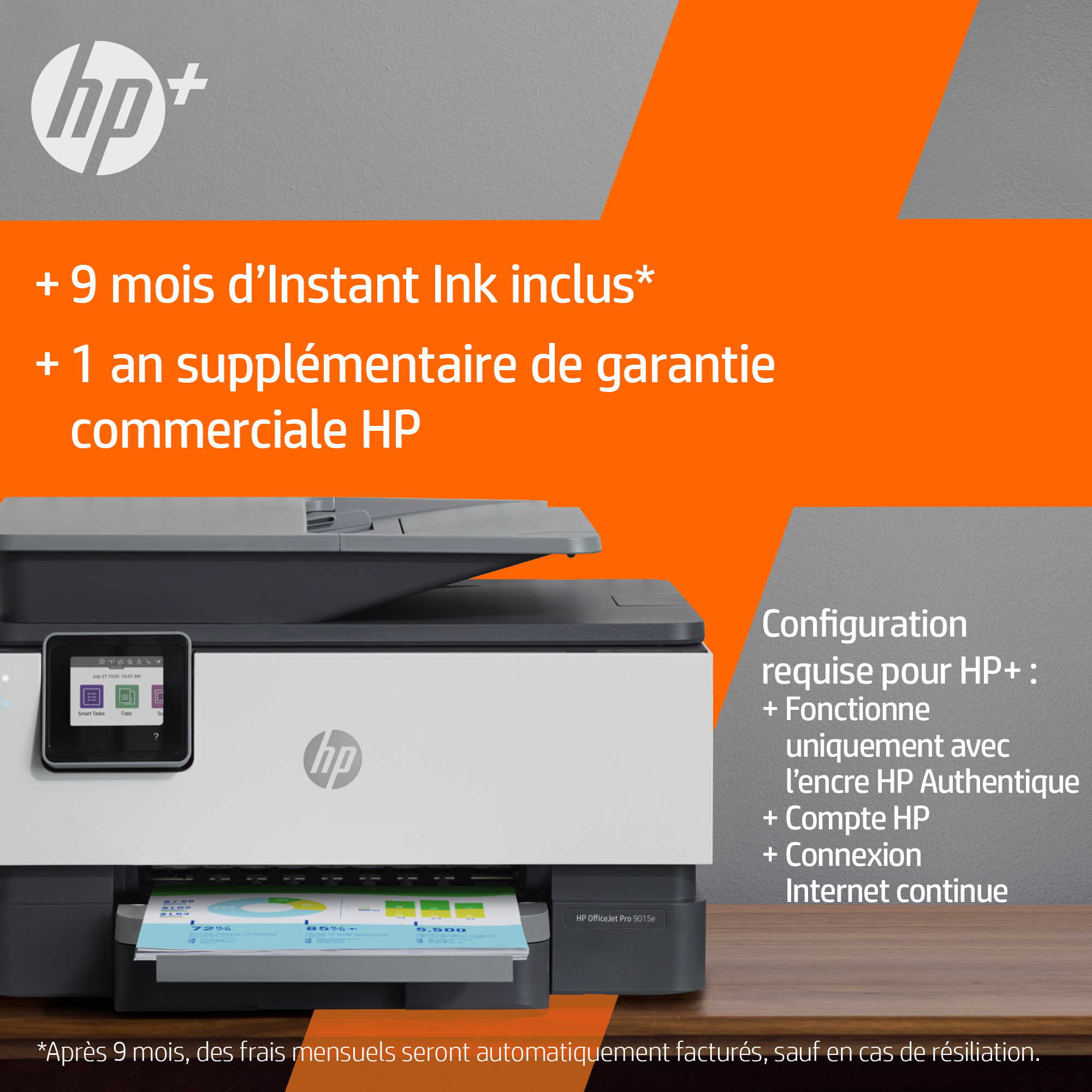 Cette imprimante est compatible HP+. Choisissez HP+ lors de la configuration du produit et profitez de nombreux avantages. HP+ nécessite un compte HP, une connexion Internet active et l’utilisation exclusive de cartouches d’encre HP authentiques tout au long de la vie de l’imprimante. Informations supplémentaires: http://www.hp.com/plus-faq