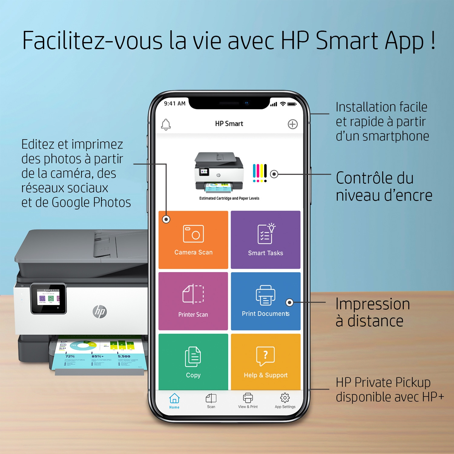 Cette imprimante est compatible HP+. Choisissez HP+ lors de la configuration du produit et profitez de nombreux avantages. HP+ nécessite un compte HP, une connexion Internet active et l’utilisation exclusive de cartouches d’encre HP authentiques tout au long de la vie de l’imprimante. Informations supplémentaires: http://www.hp.com/plus-faq