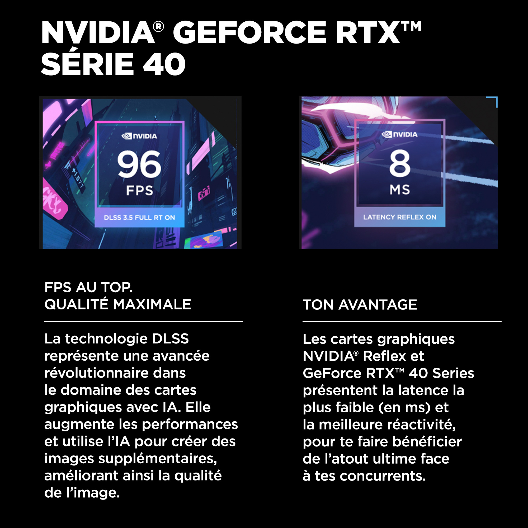 Avec le nouveau PC OMEN 17, le but n’est pas de proposer des fonctionnalités que vous n’utiliserez jamais. Mais ce PC vous offre tout ce dont vous avez besoin pour d’excellentes conditions de jeu, sans superflu : un incroyable écran IPS 17 pouces 100 % sRGB, de nouveaux processeurs AMD Ryzen™ 8000 optimisés par l’IA[1] et des cartes graphiques NVIDIA® RTX™ série 40, ainsi que d’un clavier numérique RGB à une zone.