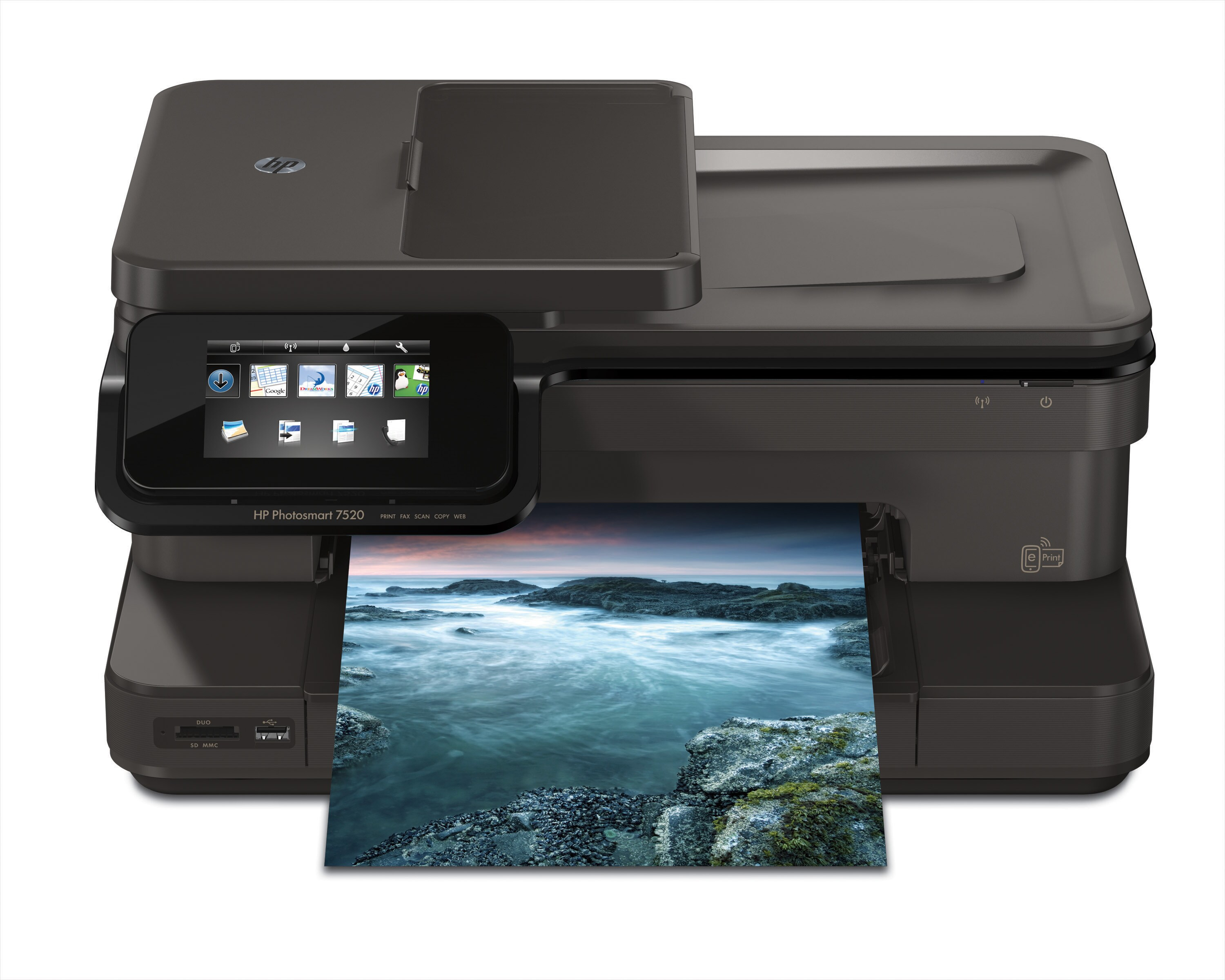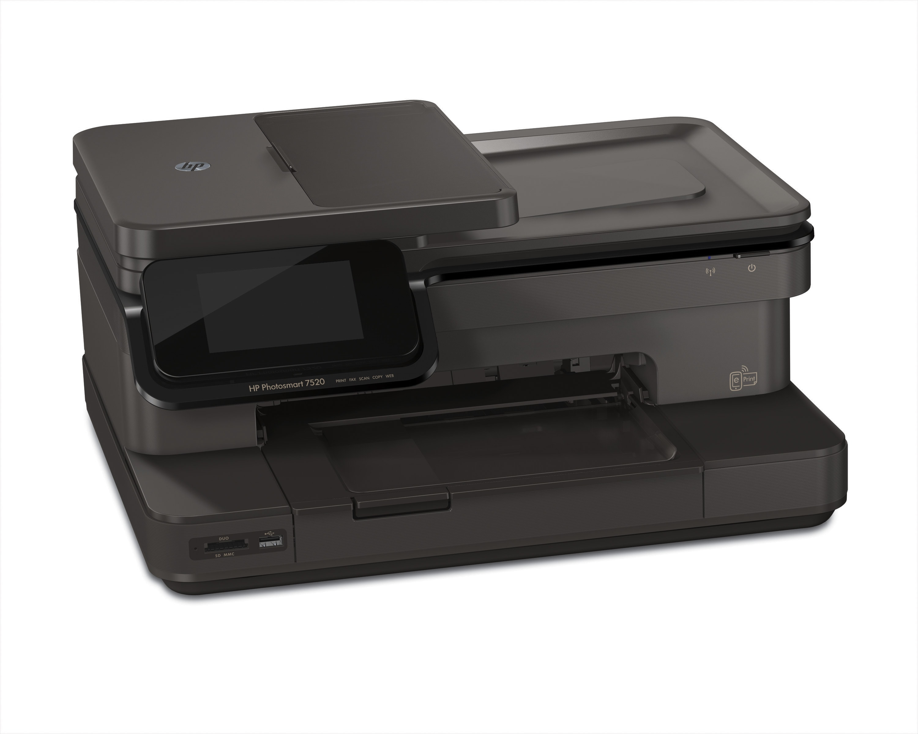 L'imprimante e-tout-en-un HP Photosmart 7520 est idéale pour les particuliers désireux d'obtenir des photos de qualité labo et profiter de la polyvalence du traitement avancé du papier, de la numérisation vers l'e-mail, de la télécopie et de l'impression mobile/sans fil.