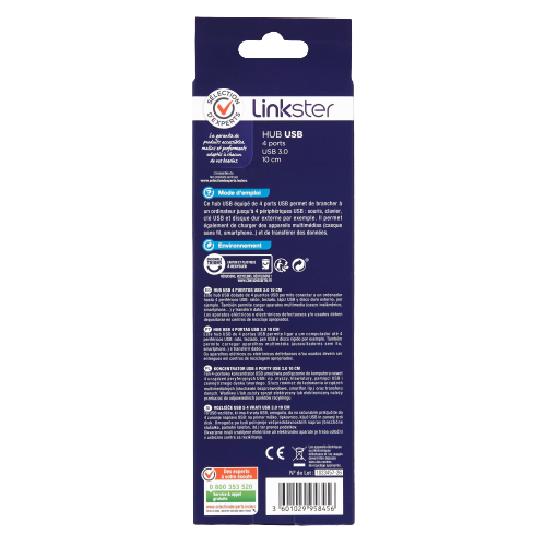 | Libellé | HUB USB 4 ports USB 3.0 - 0,1m - Sélection d’Experts - Linkster |