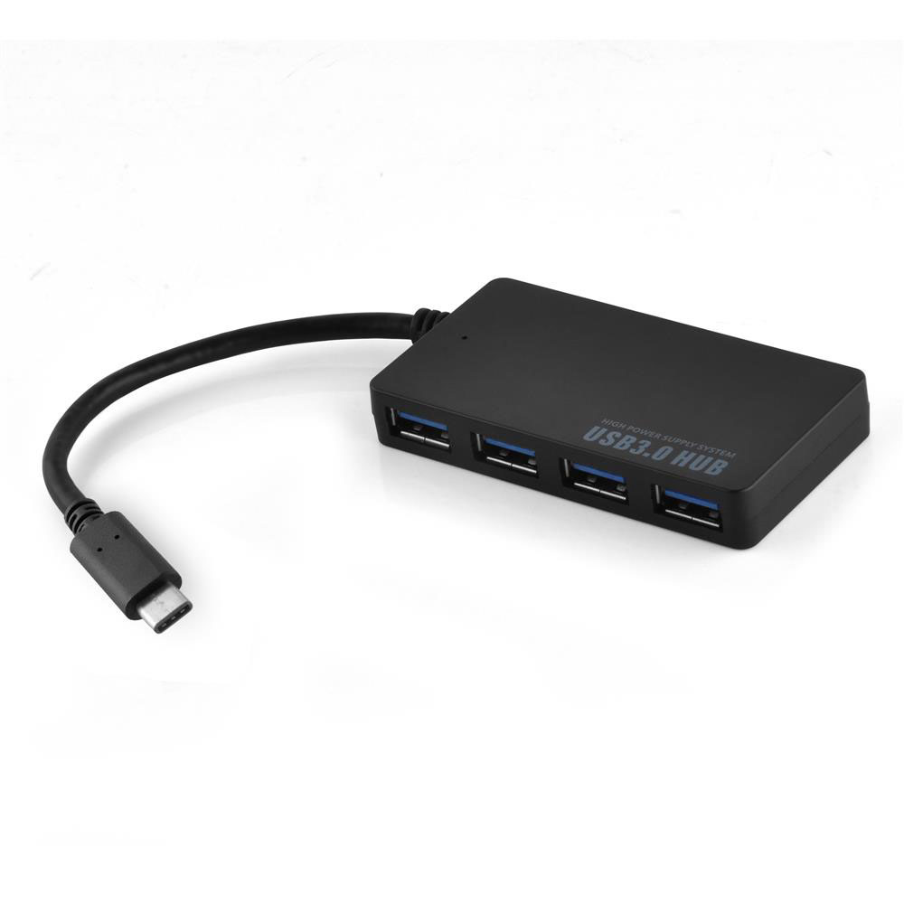 Hub USB 4 ports USB 3.0 multi-interface Plug & Play avec USB-C mâle de type-C femelle et alimentation ada
