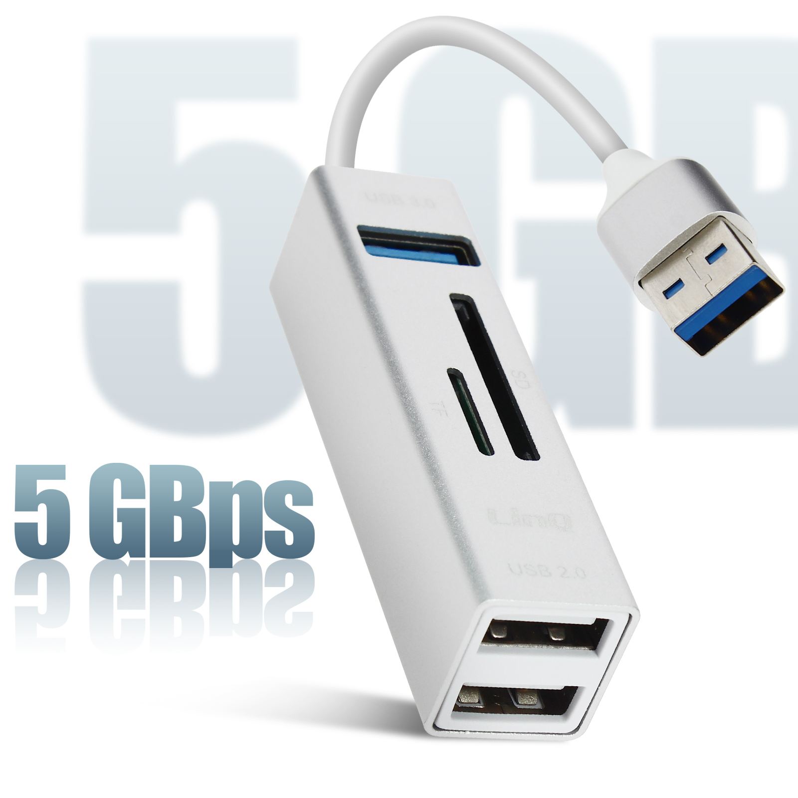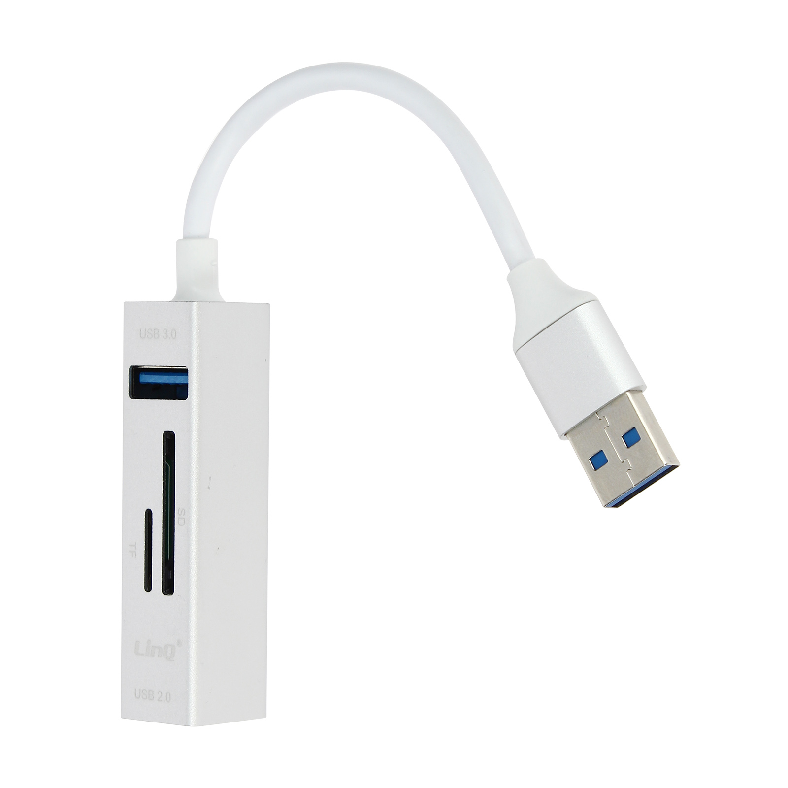 Hub USB 5 en 1 avec 3 Ports USB et Lecteur de Carte SD Micro-SD LinQ Argent