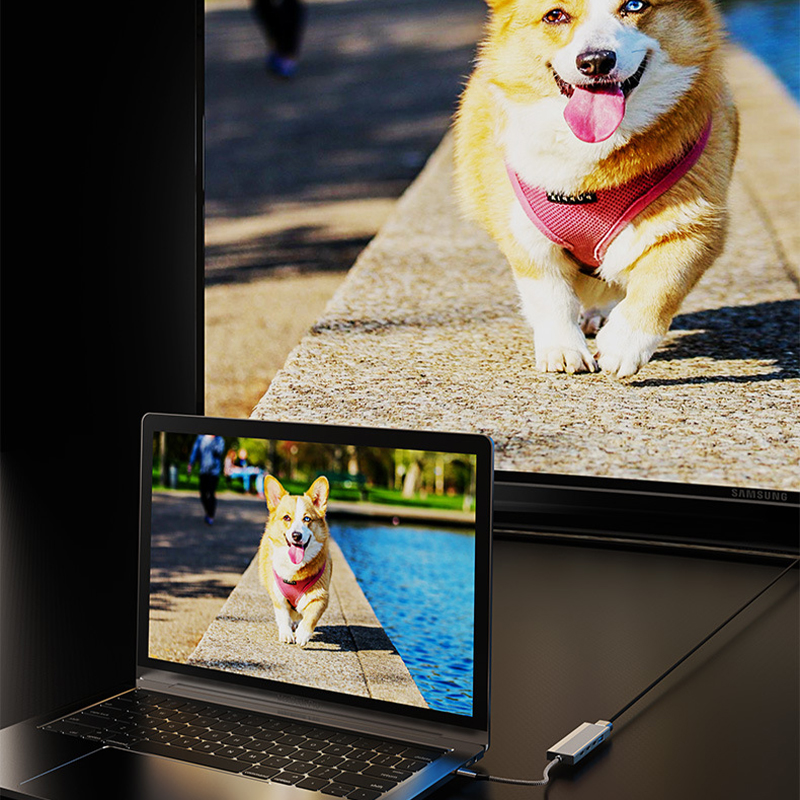 HDMI 4K cristallin : Plongez dans des visuels époustouflants grâce au port HDMI 4K du hub. Connectez votre ordinateur portable ou votre smartphone à un moniteur externe, une télévision ou un projecteur et profitez d'une diffusion vidéo haute définition, de présentations et d'expériences de jeu.
