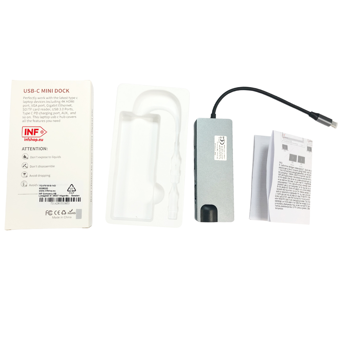 | Libellé | Hub USB-C 9-en-1 avec USB 3.0, HDMI, RJ45, lecteur de carte SD/TF, 100 W PD, VGA |