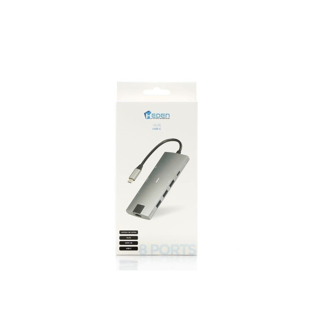 Hub USB-C pour Macbook&PC 8 ports: USB x 3 + HDMI 4k*2k@30Hz +RJ45 1000Mbit/s + USB-C (charge 60W et tran