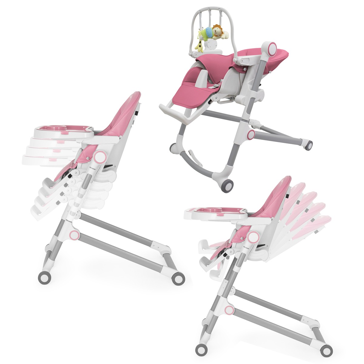 HUGO Chaise haute pliable et inclinable + arche de jeux Rose