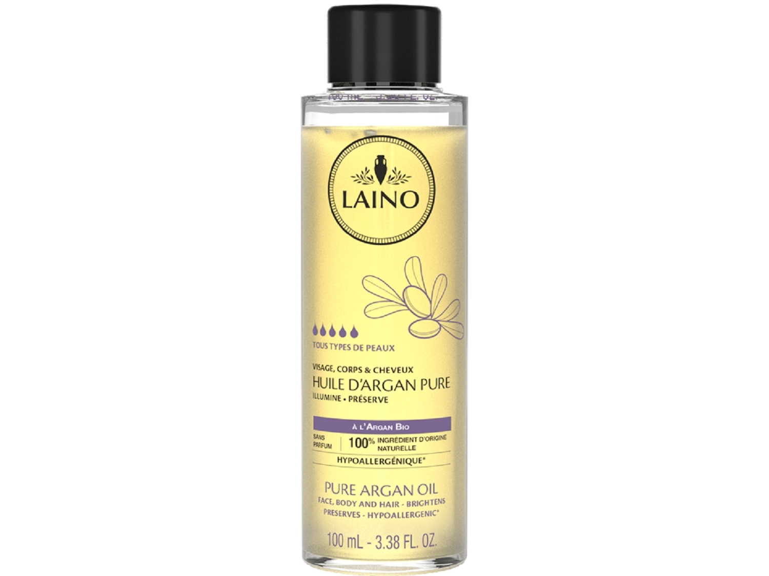 LAINO a sélectionné cette huile d'argan BIO pour ses propriétés anti-oxydantes. 100% naturelle et riche en omégas 6 et 9, elle nourrit, illumine et préserve la jeunesse de votre peau. Hypoallergénique*, cette huile peut s'utiliser sur le corps, le visage et les cheveux. *Formulé pour minimiser les risques d’allergies