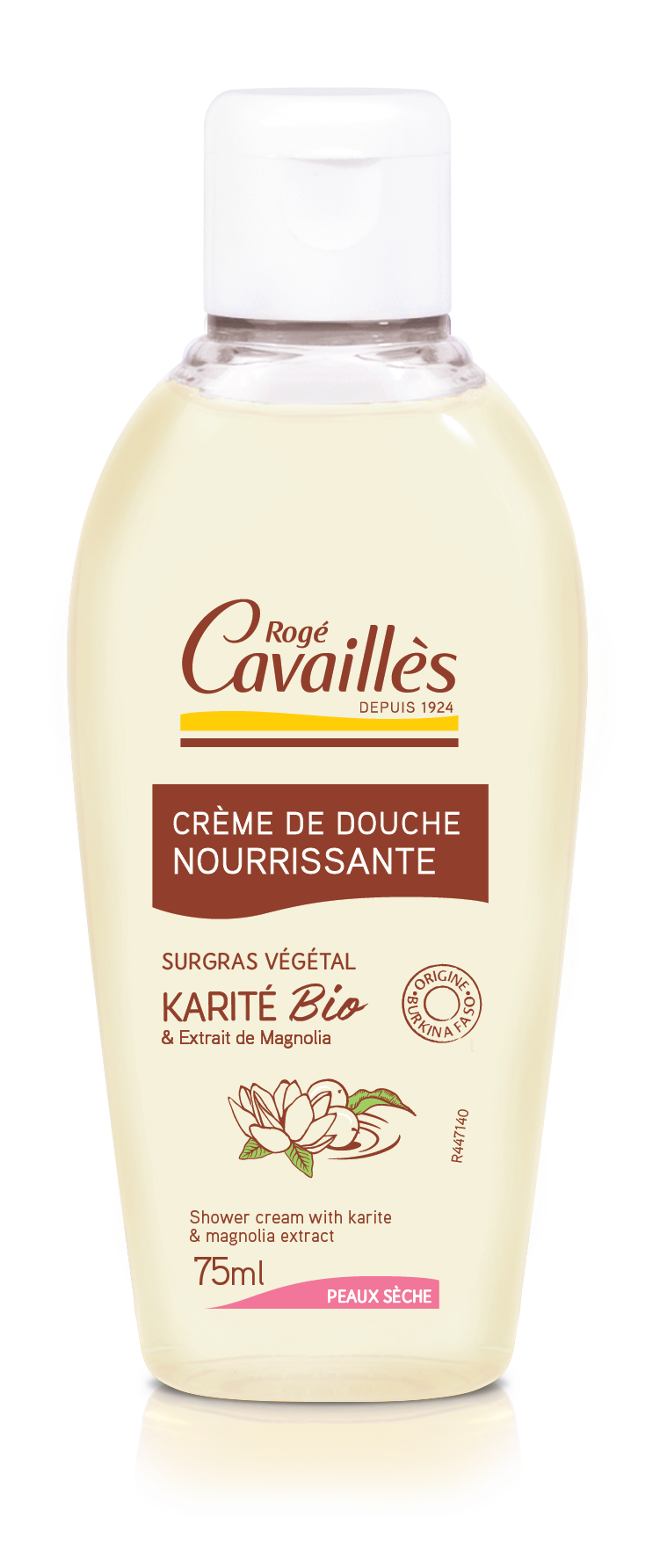 Rogé Cavaillès Crème de Douche Beurre de Karité et Magnolia 75 ml est une crème de douche au Beurre de Karité et au Magnolia, spécialement formulée pour nettoyer les peaux sensibles et sèches. Cette crème de douche est enrichie en Beurre de Karité qui nourrit intensément et aide à protéger votre peau du dessèchement cutané. Sa texture crème onctueuse laisse sur votre peau un délicat parfum de Magnolia qui fait de votre douche un pur moment de plaisir. Votre peau est ainsi douce, souple et hydratée en un instant.