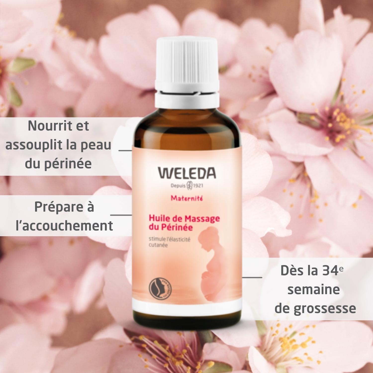 Le périnée est un muscle intime dont la souplesse joue un rôle essentiel pendant l'accouchement. Apprivoiser cette partie de son corps en l'exerçant et le massant, c'est le préparer au passage du bébé lors de l'accouchement. C'est aussi lui permettre de mieux récupérer après, pour retrouver en toute quiétude sa continence et une vie sexuelle sans douleur ni appréhension. Pour améliorer la souplesse des tissus grâce à un massage doux dès la 34e semaine de grossesse, Weleda a conçu l'Huile de Massage du Périnée. A base d'huiles d'amande douce et de germe de blé, naturellement riche en vitamine E, elle nourrit la peau du périnée, la rendant moins fragile et plus souple. Testée sous contrôle dermatologique.