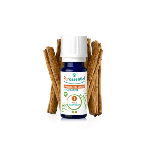 Prendre au maximum 2 gouttes d'Huile essentielle de Cannelle de Ceylan bio Puressentiel 3 fois par jour, sur un comprimé neutre Puressentiel (ou 1 cuillère à café de miel, d'huile d'olive, ou 1/4 de sucre). Ne pas utiliser pure sans support, ni mélangée à l'eau. Pour d'autres conseils d'utilisation, demandez conseil à votre pharmacien. Équivalence : 1ml => 31 gouttes Les huiles essentielles sont à utiliser avec prudence. Leur emploi est strictement contre-indiqué chez la femme enceinte ou allaitante, l'enfant de moins de 3 ans et relatif chez les enfants de moins de 7 ans. Un complément alimentaire ne doit pas se substituer à une alimentation variée et équilibrée et à un mode de vie sain. Se conformer aux conseils d’utilisation. Ne pas dépasser la dose journalière conseillée. Tenir hors de portée des jeunes enfants. Compléments alimentaires. Pour votre santé, mangez au moins cinq fruits et légumes par jour. www.mangerbouger.fr