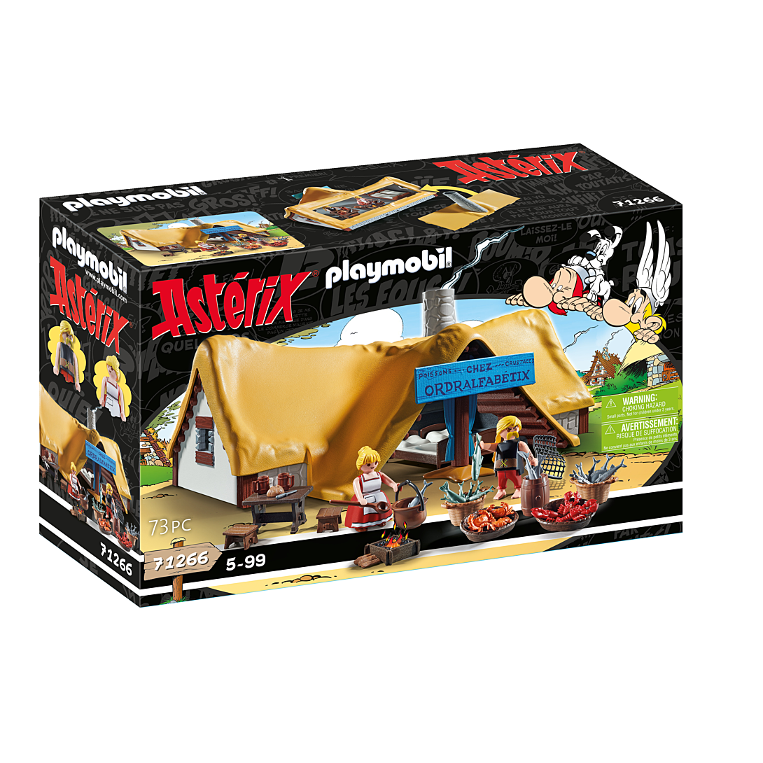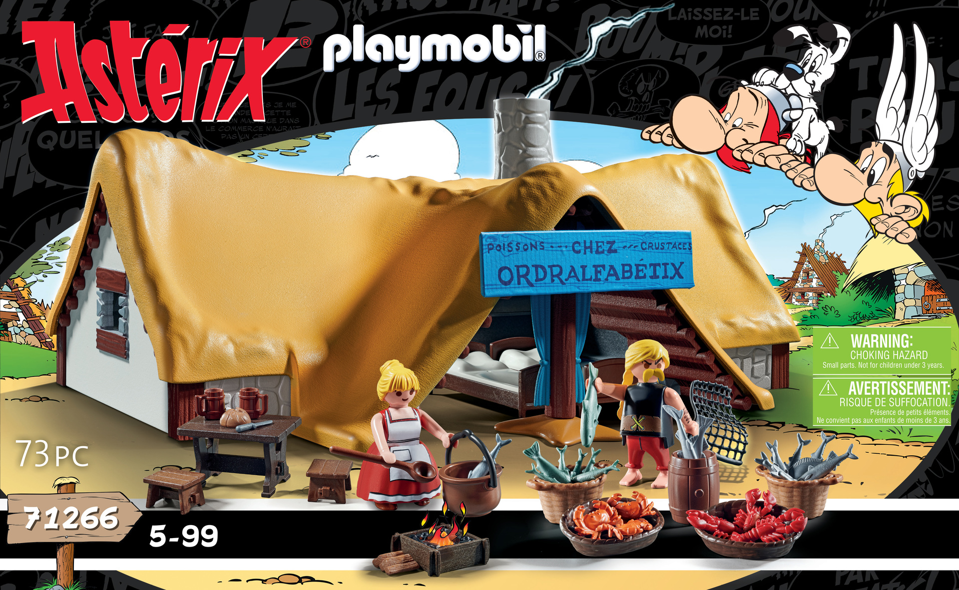 Contient 2 personnages (Ordralfabétix et sa femme) et de nombreux accessoires liés à la poissonnerie (poissons, crabes, homards…) Le toit de la hutte est amovible.