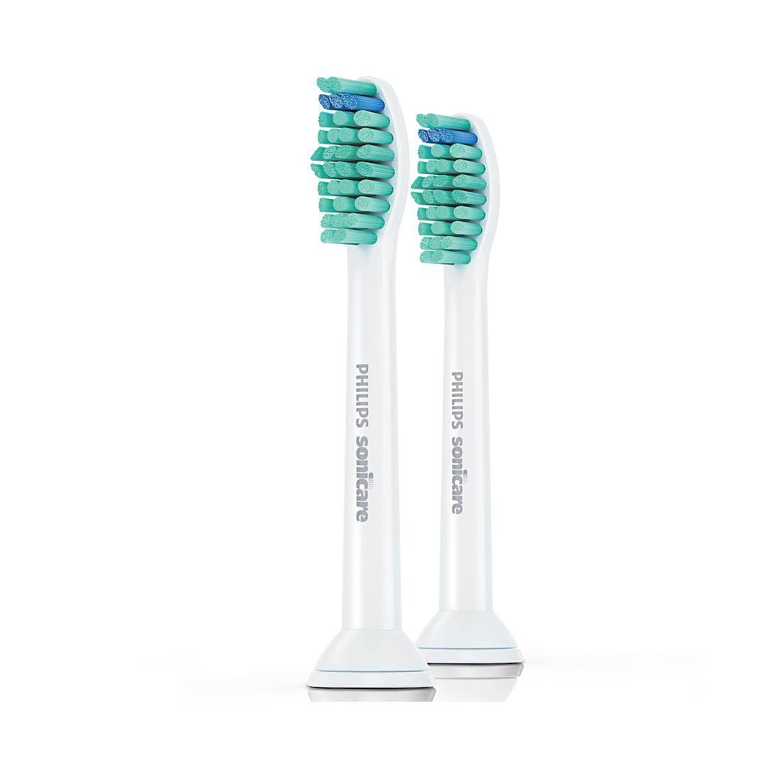 Philips Sonicare ProResults, Têtes de brosse à dents standard Lot de 2 Taille standard, Clipsable, Nettoyage comple Excellente performance à un excellent rapport qualité/prix La tête de brosse emblématique Philips Sonicare ProResults est idéale pour les utilisateurs des nouvelles comme des anciennes brosses à dents Sonicare à la recherche d'un authentique nettoyage Sonicare à un rapport qualité/prix exceptionnel. Une sensation de propreté incroyable • Élimine jusqu'à 2 fois plus de plaque dentaire qu'une brosse à dents manuelle Conçue pour des performances optimales • Des performances Philips Sonicare optimisées • Les brins avec indicateur d'usure vous garantissent un nettoyage efficace • Conçu pour optimiser le mouvement sonique Améliore l'hygiène bucco-dentaire • Un geste quotidien de santé bucco-dentaire Tête de brosse compatible avec plusieurs manches • Tête de brosse clipsable facile à fixer
