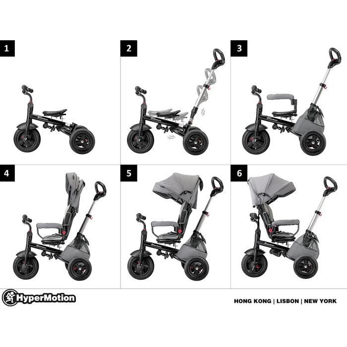 HyperMotion Tricycle Pour Enfant 12 mois à 5 ans (25 kg), Poussette Habillage Pluie, Roues Pompées, Siège
