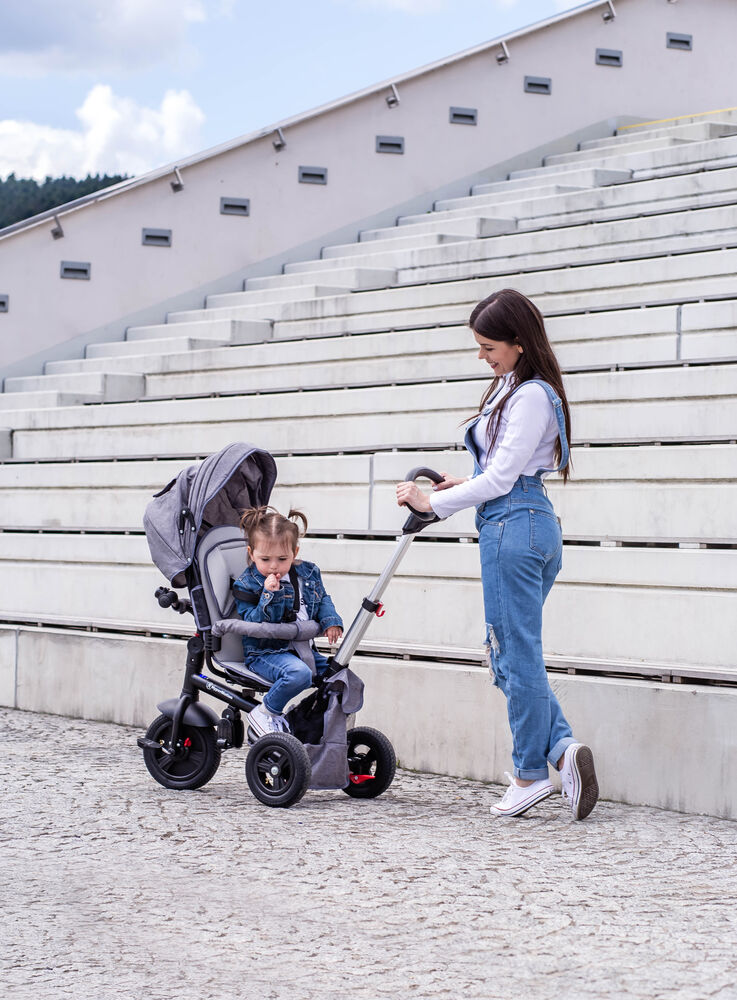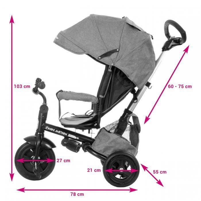 - Des roues larges et pompées pour un confort d'utilisation,L' option marche arrière ou marche avantArceau de sécurité amovibleCapote qui peut être plié ou détaché avec visière qui permet au parent d'observer l'enfant pendant la marche.Un repose pieds pour un enfant plus jeune, Une roue avec une fonction de course lente (l'enfant peut pédaler librement quelle que soit la personne qui conduit le vélo),Hauteur du poussoir réglable avec un seul bouton, Un grand panier pour les jouets ou le shopping, Une housse de pluie incluse. Volant & poussoir couplés, ainsi le parent peut contrôler le sens de la marche.