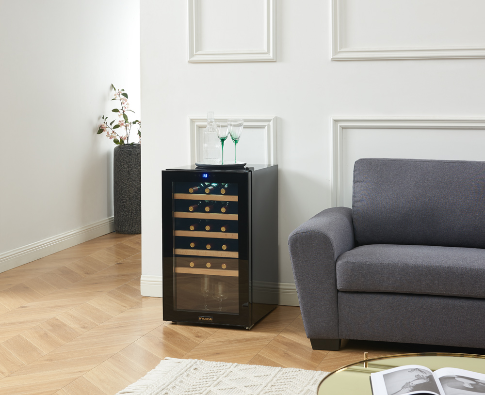 Hyundai - Cave à vin 41 bouteilles 91L single zone clayette métal finition bois