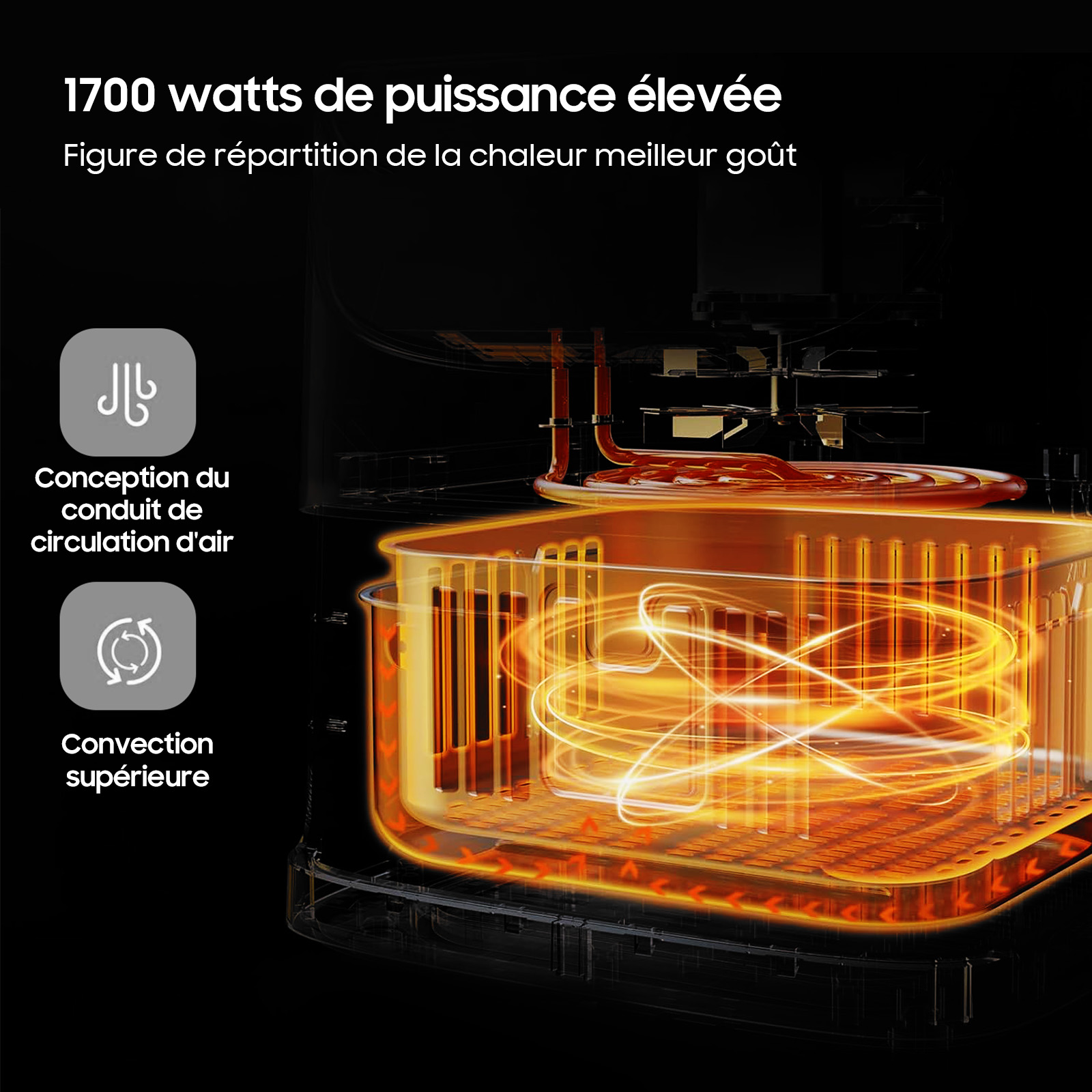 La puissance de 1700W de notre friteuse air chaud assure une montée en température rapide et une cuisson efficace, réduisant le temps de préparation pour que vous puissiez profiter plus vite de vos plats préférés.