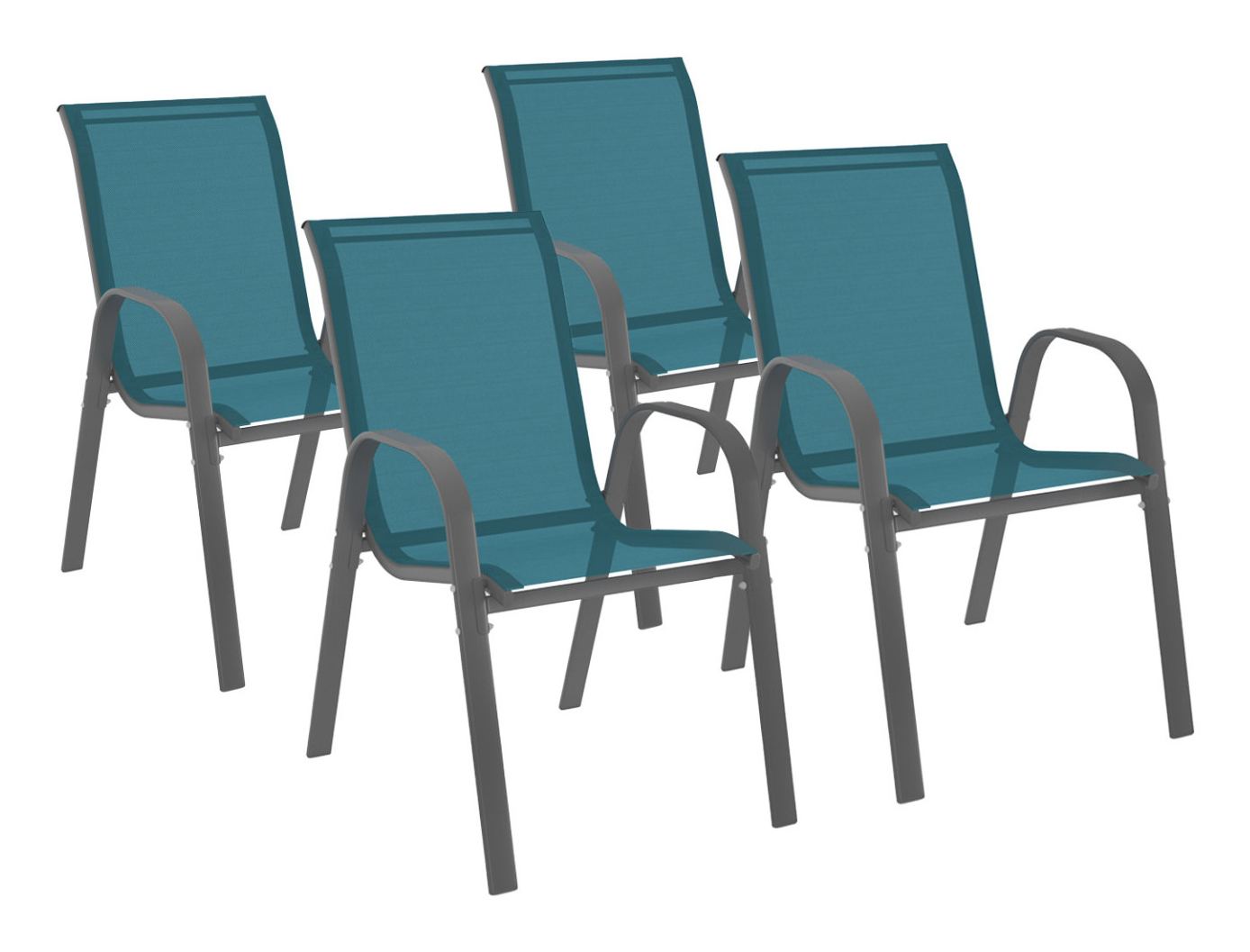 A la recherche de chaises extérieures pour équiper votre table de jardin ? Optez pour ce lot de 4 chaises de jardin en textilène bleu canard et profitez des rayons du soleil durant les beaux jours. Vous pourrez vous détendre autour d'un bon repas, lire un livre ou tout simplement prendre un apéritif entre amis.