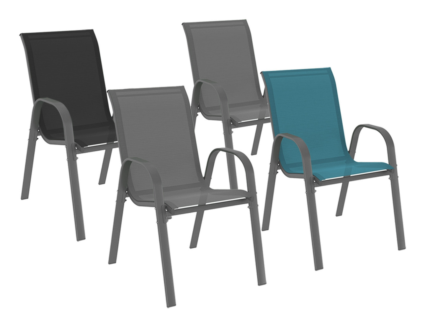 Accordez-vous un moment agréable dans votre jardin ou sur votre terrasse avec ce lot de 4 chaises mix color en acier gris anthracite et textilène gris, noir et bleu. Profitez ainsi de moments chaleureux lors de belles journées ensoleillées confortablement installé avec vos proches autour de votre table de jardin. Résistantes à la pluie et robustes, les chaises LYMA pourront rester à l'extérieur même si vous ne les utilisez pas.