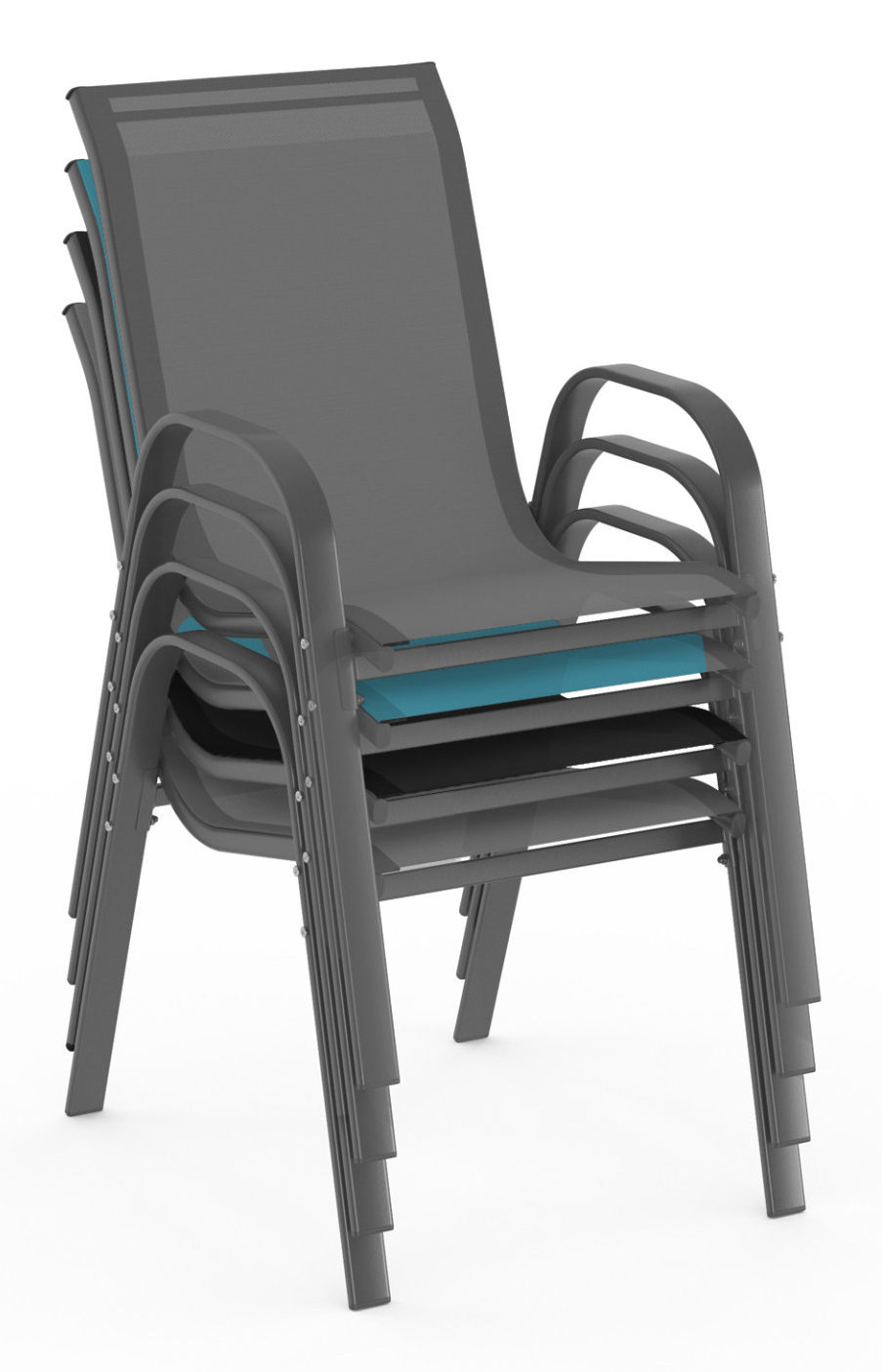 Ce lot de 4 chaises, élégantes et modernes, au coloris gris, noir et bleu, s'accordera très bien à tout type de mobilier de jardin.