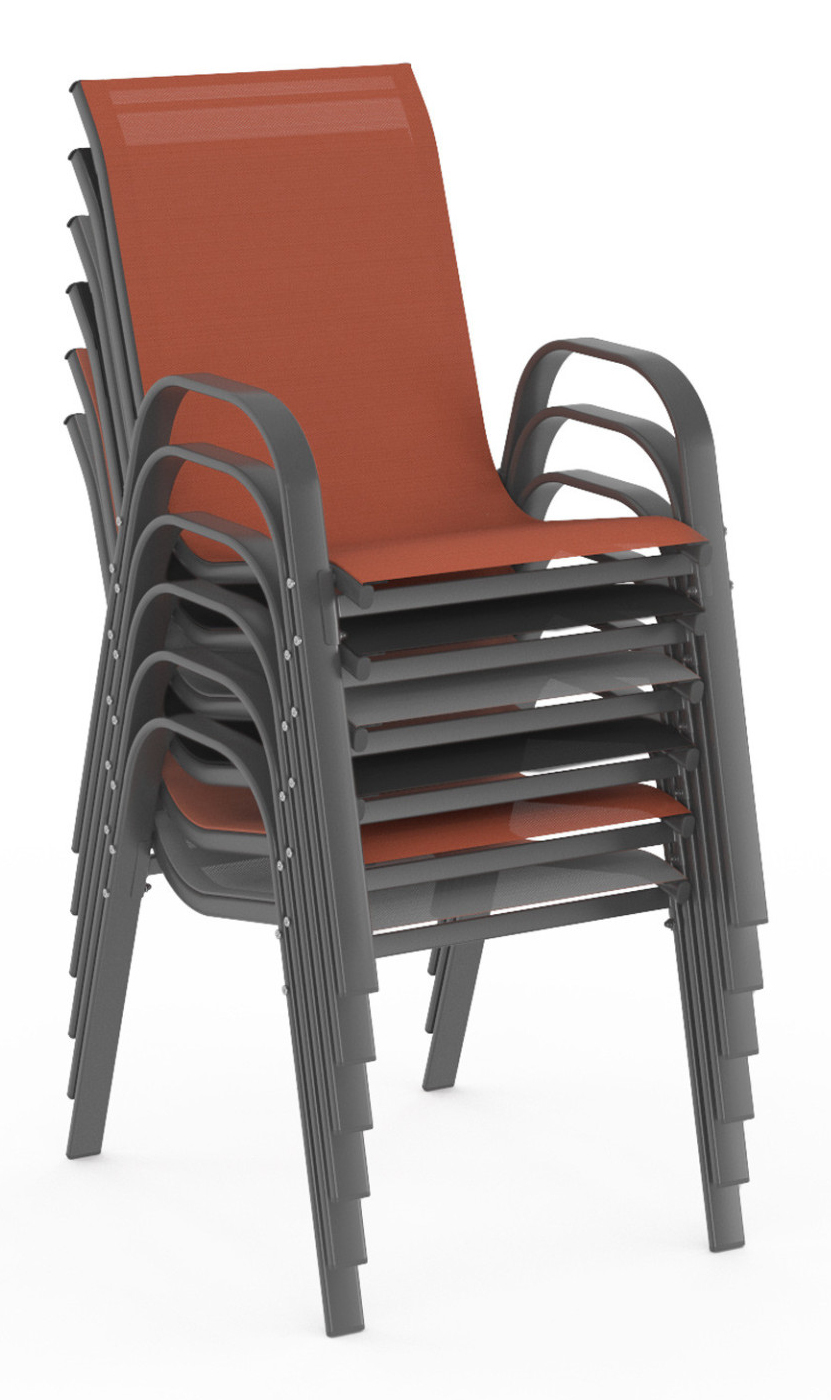Envie de profiter de votre terrasse ou de votre jardin lors des beaux jours ? Optez pour ce lot de 6 chaises mix color en acier gris anthracite et textilène gris, noir et terracotta et accueillez chaleureusement vos proches autour de votre table de jardin pour profiter d'un agréable moment au soleil ! Robustes et résistantes à la pluie, elles pourront rester à l'extérieur même si vous ne les utilisez pas.