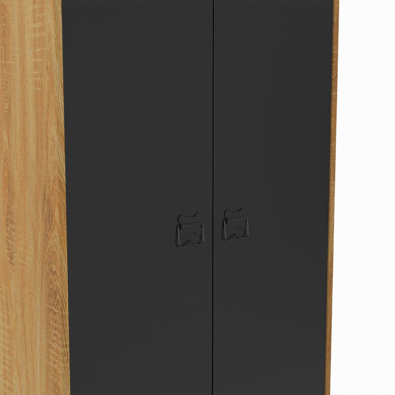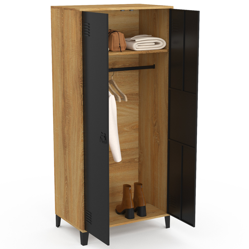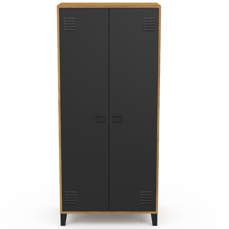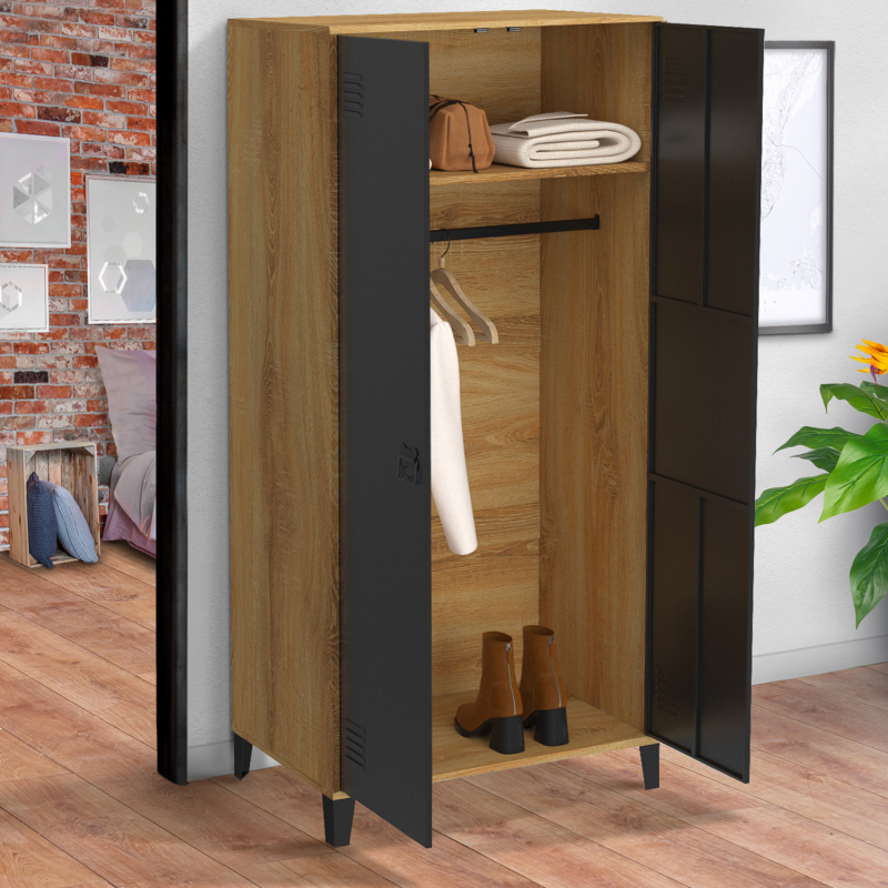| Libellé | IDMARKET Armoire vestiaire penderie ESTER 2 portes métal noir et contour bois design industriel |