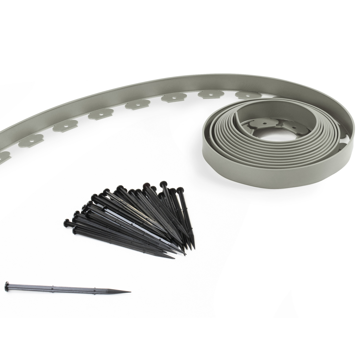 Descriptif de la bordurette de jardin flexibleComposez des parterres de fleurs et des allées de jardin selon vos envies grâce à cette bordurette grise de 10 M de long en plastique flexible et fixez-la avec ses 30 piquets pour plus de maintien ! Conçue en polyéthylène et matériaux recyclés, cette bordurette résiste aux chocs et s'adapte à tous types de parterres et allées. Très pratique et simple d'utilisation, vous pourrez réaliser les formes que vous souhaitez et ainsi décorer vos espaces verts selon vos goûts et vos envies ! Pour cela, il vous suffit de creuser à la forme souhaitée et de dérouler la bordurette le long de la forme réalisée. En maintenant cette dernière, vous n'aurez qu'à enfoncer les piquets en plastique fournis dans les trous prévus à cette effet pour plus d'adhérence au sol. Si la longueur est trop importante pour la surface que vous voulez délimiter, il est tout à fait possible de découper la bordurette.Sans cailloux ou même béton, votre bordurette de 10 M est fixée au sol ! Il ne vous reste plus qu'à habiller votre parterre de jolies fleurs ou vos allées comme vous le souhaitez ! Votre jardin est maintenant décoré et délimité de façon sophistiquée en un rien de temps ! Dimensions de la bordurette de jardin flexible- Dimensions globales de la bordurette : Longueur 10 M x Hauteur 5 cm x Épaisseur 4.7 mm- Dimensions d'un piquet : Hauteur 20 cm - Nombre de piquets : 30 - Matériaux : Polyéthylène - matériaux recyclés- Couleur : Gris- Peut être découpéeDécouvrez également nos autres coloris sur notre boutique en ligne : - Bordurette de jardin flexible noire 10M avec 30 piquets d'ancrage- Bordurette de jardin flexible verte 10M avec 30 piquets d'ancrage- Bordurette de jardin flexible terracotta 10M avec 30 piquets d'ancrage
