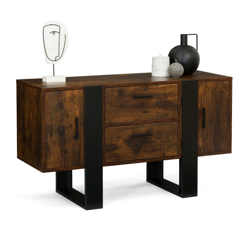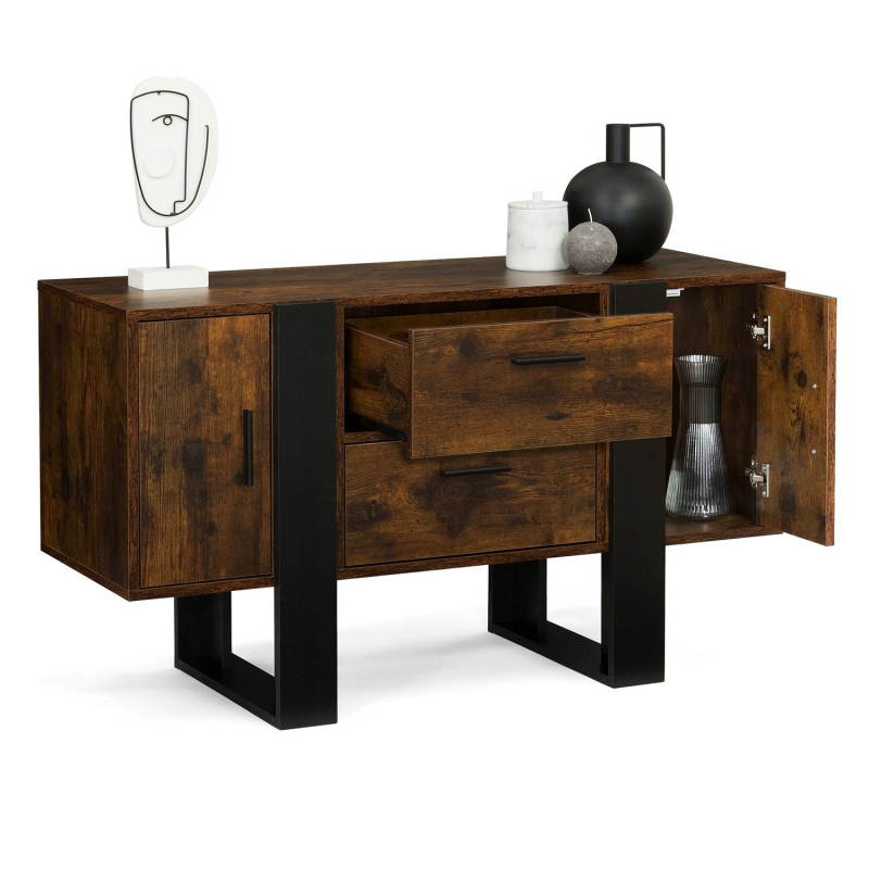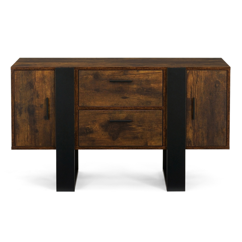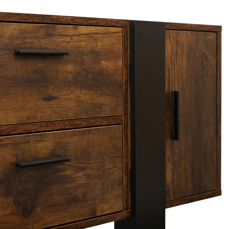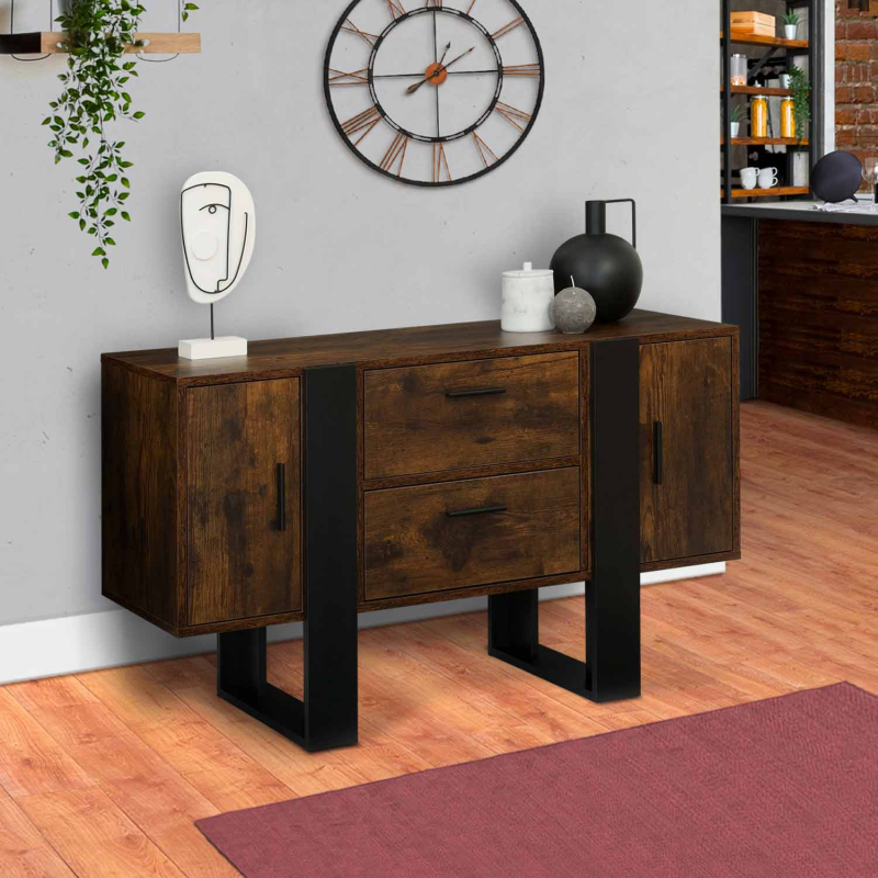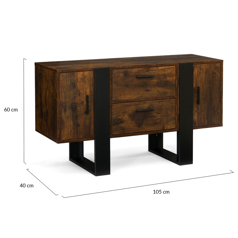 Vous recherchez un meuble à la fois tendance et pratique qui vous offre une capacité de rangement optimale ? Découvrez le buffet PHOENIX 2 portes et 2 tiroirs bois et effet vieilli noir qui donnera un esprit atelier à votre salle à manger !Doté de nombreux espaces de rangement, ce buffet aux dimensions compactes (105 x 40 cm) est idéal pour une pièce de vie ordonnée. Ses 2 placards et ses 2 tiroirs vous permettront de ranger vaisselle, électroménager, vases ou même livres de cuisine et autres effets personnels à l'abri des regards.Ses pieds larges reliés entre eux et sa structure en panneaux de particules de bois à l'aspect massif assurent solidité et stabilité à ce buffet ultra design.L'association des pieds noirs et de la structure en bois effet vieilli lui donne un effet bi-matière qui apporte modernité et look indus à votre intérieur. Ses coloris chaleureux se fondront à merveille avec votre décoration intérieure pour une ambiance authentique et moderne à la fois.Optez pour ce buffet bas industriel bois effet vieilli et noir au style vintage à prix irrésistible !Vous souhaitez une ambiance conviviale et harmonieuse dans votre pièce à vivre ? Craquez aussi pour notre console ou encore pour notre table à manger extensible 6-10 personnes, le tout en bois effet vieilli et structure noire. Dimensions du buffet PHOENIX 2 portes 2 tiroirsDimensions globales : Longueur 105 cm x largeur 40 cm x Hauteur 60 cmDimensions de chaque tiroir : L. 40 x l. 40 x H. 17,5 cmDimensions de chaque placard : L. 19,5 x l. 40 x H. 37 cmDimensions de chaque pied : l. 9 x H. 20 cmMatériaux : panneaux de particules de bois mélaminés (PB)Épaisseur des plateaux : 1,5 cmÀ monter soi-mêmeCe modèle de buffet 2 portes et 2 tiroirs PHOENIX est disponible en bois et noirRetrouvez l'ensemble de notre collection de meubles modernes sur notre boutique en ligne !