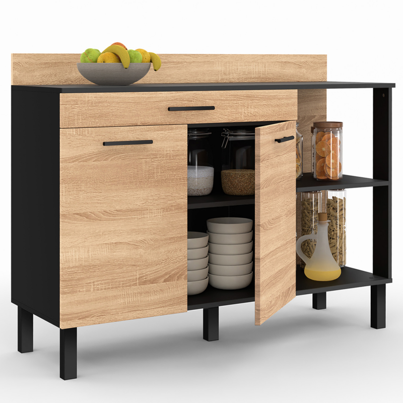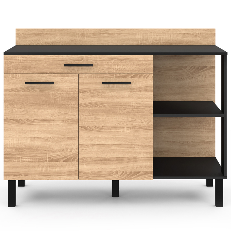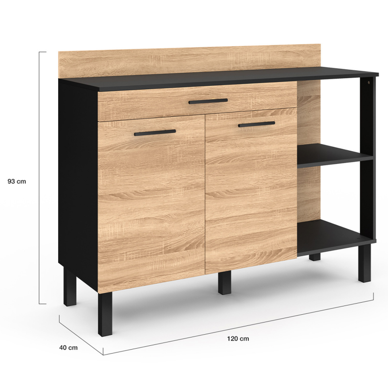 | Libellé | IDMARKET Buffet bas de cuisine 120 CM CINA plan de travail H.83 cm 2 portes + tiroir noir et façon hêtre |