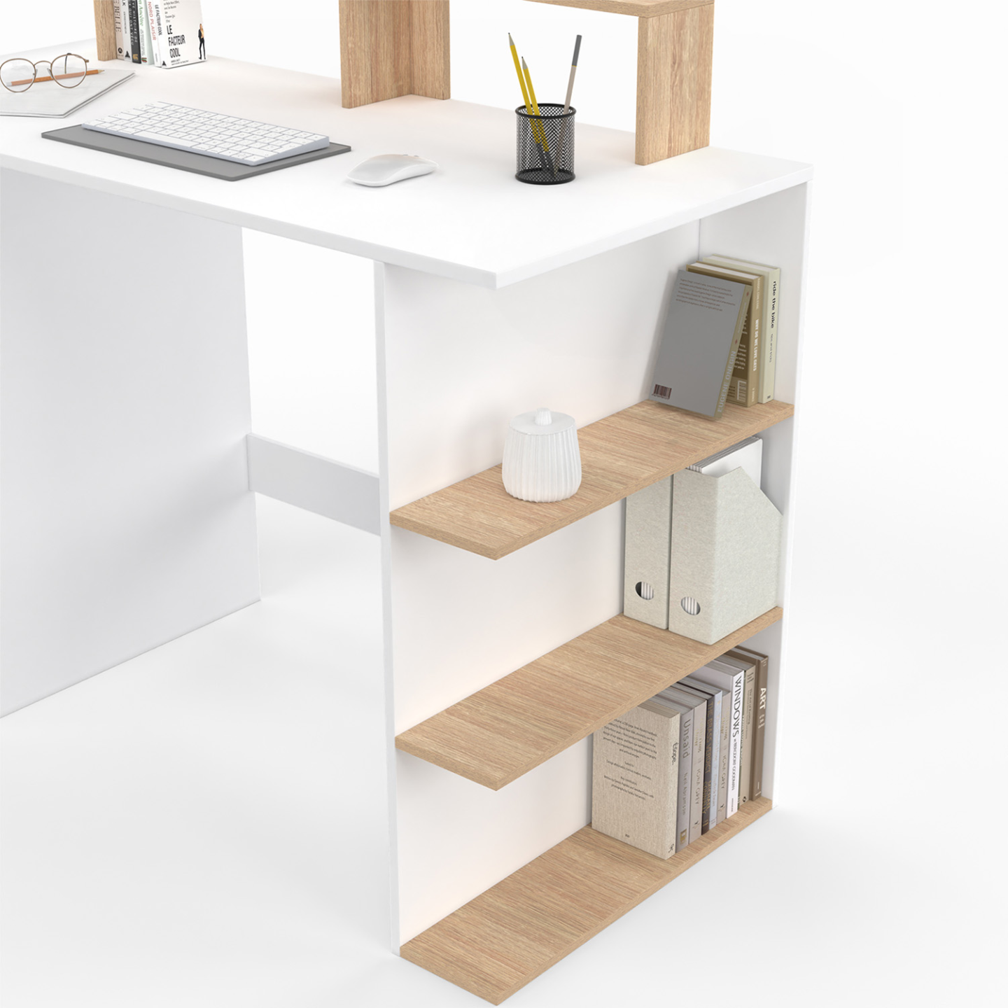 | Libellé | IDMARKET Bureau avec rangement MAY support ordinateur blanc et bois |