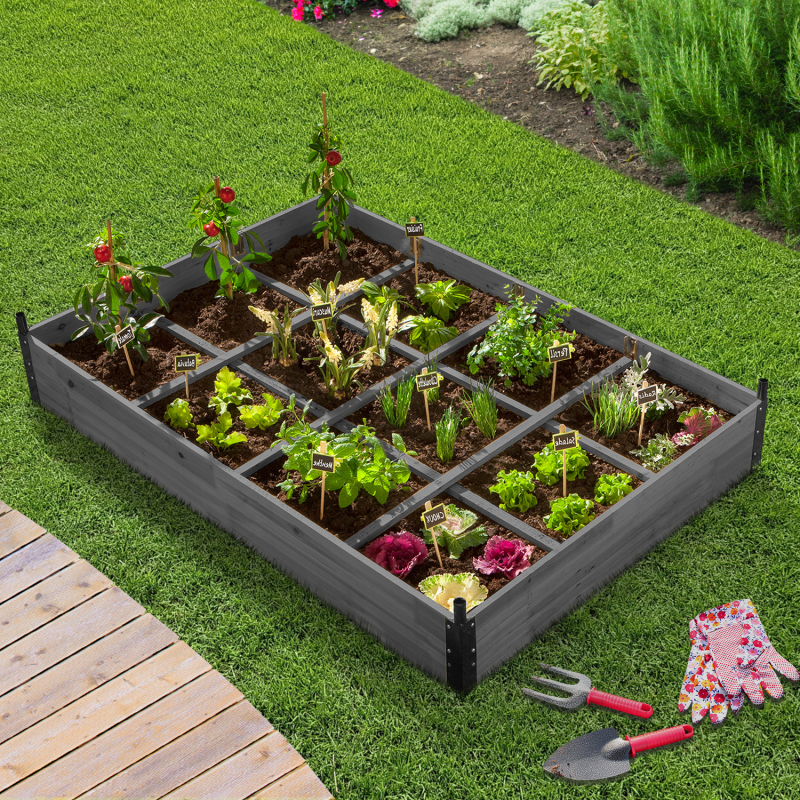 Libellé IDMARKET Carré potager 12 compartiments bois gris + housse serre châssis