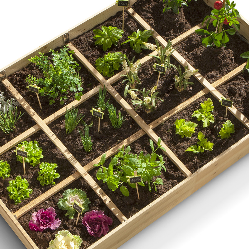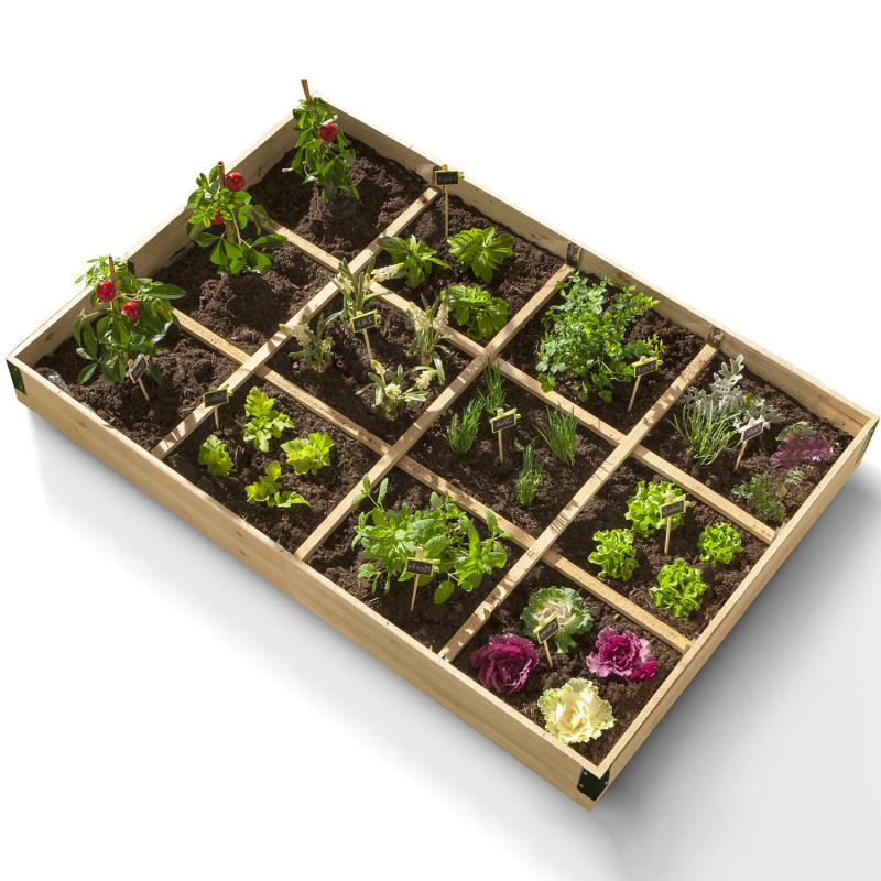 Descriptif du carré potager en bois 12 compartimentsDécouvrez le plaisir de cultiver vous-même vos aromates et légumes grâce à ce carré potager en bois 12 compartiments. Le carré potager compartimenté L.115 x l.80 x H.13 cm comprend un châssis en bois renforcé par 4 angles métalliques noirs. Pensé par des jardiniers professionnels, ce bac potager de 12 compartiments séparés vous permet d'organiser vos plantations, leur irrigation et leur traitement. La superficie cultivée est délimitée pour organiser votre jardin selon les variétés que vous souhaitez faire pousser.Cultivez à portée de main et facilement vos salades, petits légumes et autres herbes aromatiques grâce à ce carré potager compartimenté. Si vous avez la main verte, ce carré potager en bois devrait répondre à tous vos besoins !Astuce : Ajoutez une toile de paillage dans le fond de votre carré potager pour stopper l'apparition de mauvaises herbes et favoriser la bonne croissance de vos plantations ! Envie de consommer local ? Alors n'attendez plus, c'est l'élément idéal pour votre jardin et le tout, sans vous ruiner ! Dimensions du bac potager- Dimensions hors tout : Largeur 115 CM x longueur 80 CM x Hauteur 13 CM- Matière : bois de pin, angles en acier- Couleur : bois naturel, angles noirs- Epaisseur du bois : 1,4 CM- Installation facile et rapide- 12 compartimentsRetrouvez l'ensemble de nos carrés potager sur notre boutique en ligne !