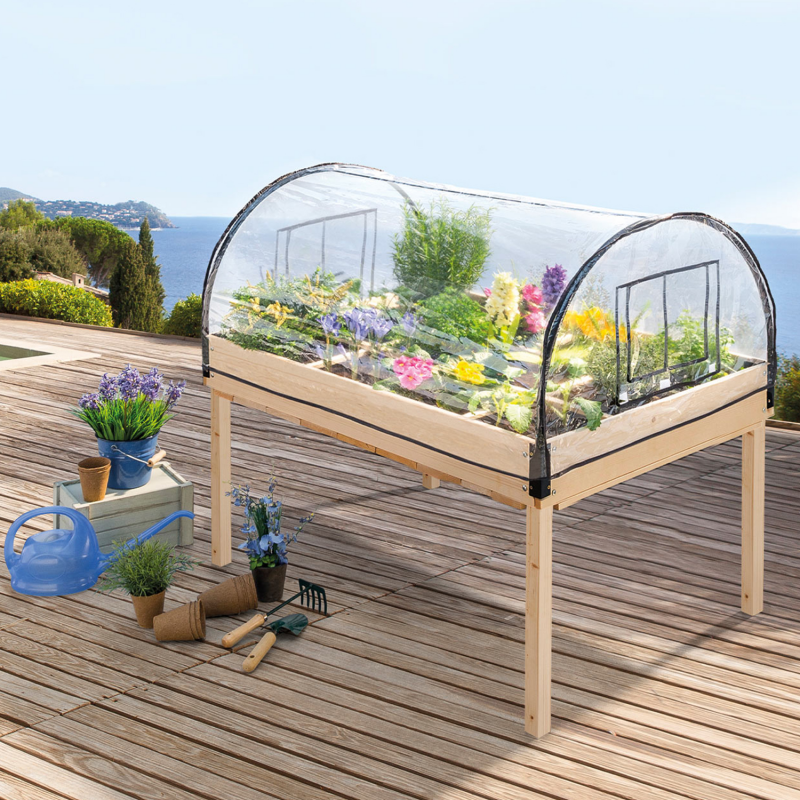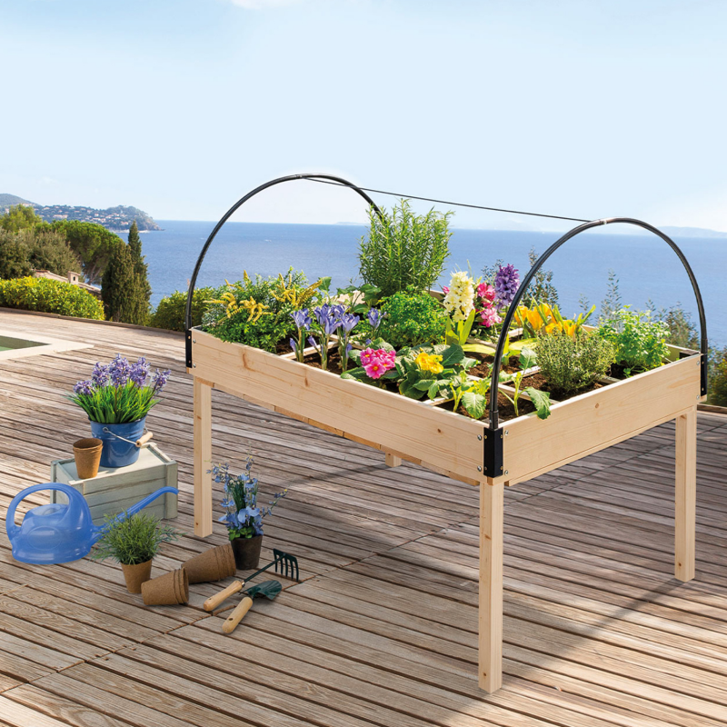 Descriptif du carré potager sur pieds 12 compartiments Vous avez envie de vous lancer dans la culture de vos propres légumes ? Le carré potager sur pieds 12 compartiments avec sa housse est fait pour vous ! Ce potager rassemble toutes les qualités du produit idéal. Avec lui, vous disposez d'une capacité de 110 litres répartie en 12 compartiments distincts pour organiser vos plantations à l'intérieur d'un potager urbain sur pied, quoi de plus idéal ? Pas besoin de se baisser pour prendre soin de vos plantations grâce aux pieds de 47 CM de hauteur.Votre potager est renforcé sur ses quatre côtés par des armatures en acier permettant de renforcer votre structure en bois. De plus, vous disposez d'une bâche amovible transparente maintenue par une structure en acier, idéale pour protéger vos pousses des éventuelles gelées. Ses 2 fenêtres vous permettent aussi de faire circuler de l'air frais dans votre potager sur pieds pour contrôler la température intérieure. Pensée par des jardiniers professionnels, cette serre de jardin 12 compartiments est fournie avec une bâche en géotextile noire pour protéger le fond de votre potager. Voilà votre nouvel allié pour pouvoir récolter vos premières plantations plus rapidement dans la saison. Avec ses quatre pieds et sa bâche en PVC, vos plantations sont protégées contre les invasions de limaces, d'oiseaux ou d'autres petits nuisibles !N'hésitez plus et installez votre potager sur pieds dans votre extérieur. Facile et rapide à monter vous obtiendrez une serre de 115 x 80 x 60/100 CM en un rien de temps. Conseil IDMarket : Appliquez un traitement sur le bois afin de protéger la durée de vie de votre potager.Dimensions du carré potager sur pieds 12 compartiments- Dimensions hors tout : Longueur 115 CM x largeur 80 CM x Hauteur 60/100 CM- Hauteur de la bâche de serre : 40 CM - PVC 0.1mm d'épaisseur- Lot de 3 bâches de serres toutes saisons- Hauteur du carré potager : 13 CM- Dimensions des pieds : L.3.7 x l.3.7 x H.47 CM- Structure en pin - Angles et armature en acier- Livré avec une bâche en géotextile noireRetrouvez l'ensemble de nos équipements du potager sur notre boutique en ligne !