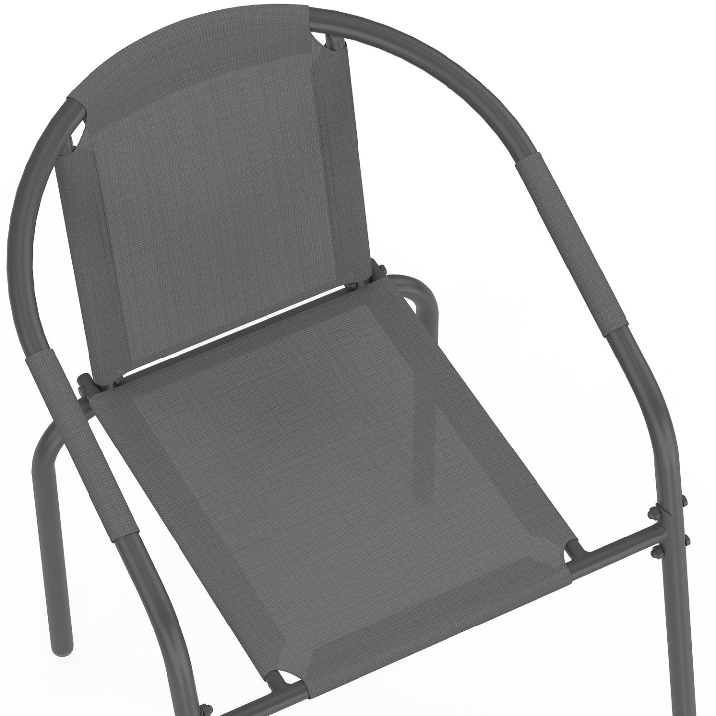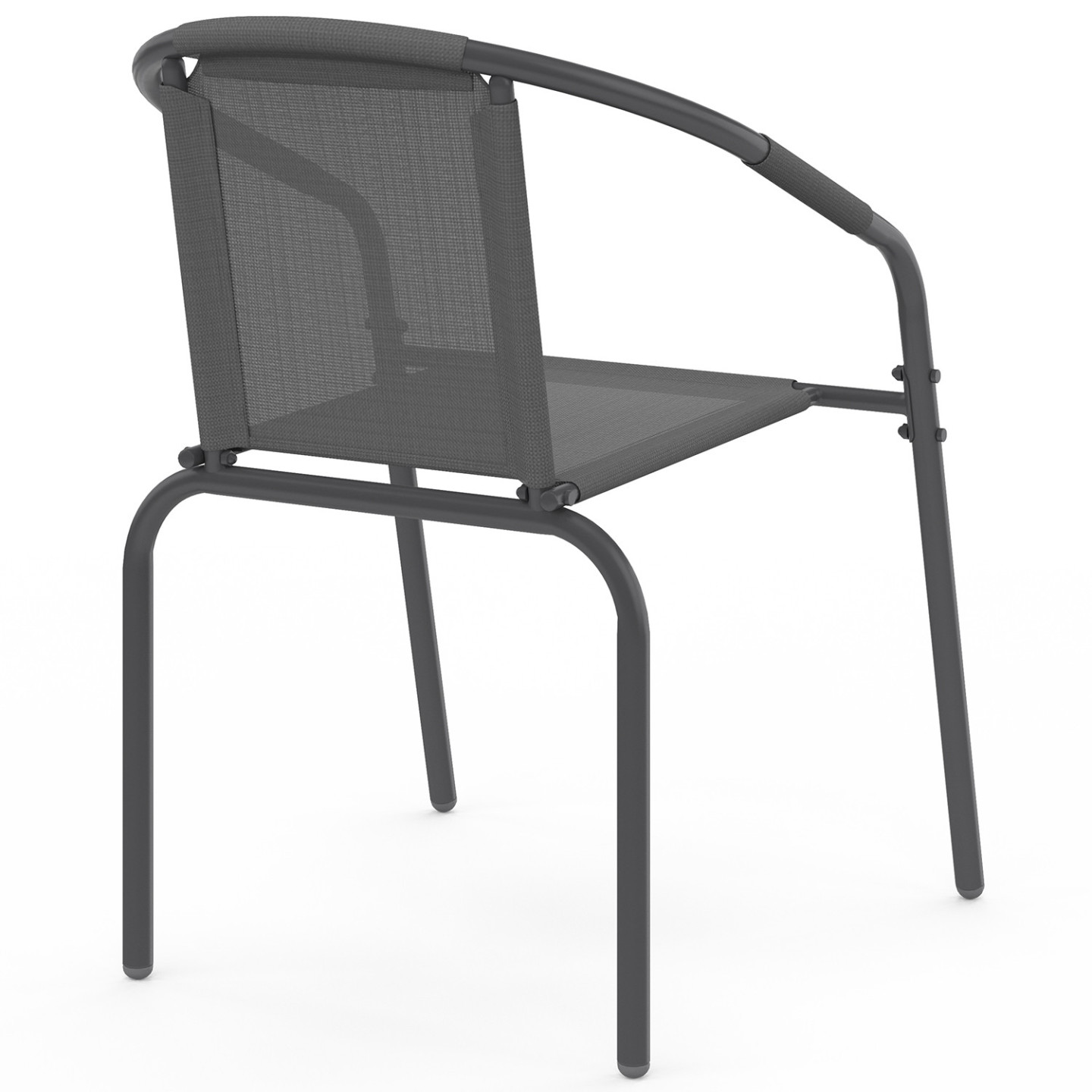 A la recherche de chaises extérieures pour équiper votre table de jardin ? Optez pour ce lot de 6 chaises de jardin en textilène gris anthracite et profitez des rayons du soleil durant les beaux jours. Vous pourrez vous détendre autour d'un bon repas, lire un livre ou tout simplement prendre un apéritif entre amis. Ce lot de 6 chaises, élégantes et modernes, au coloris gris anthracite, s'accordera très bien à tout type de mobilier de jardin.Les chaises THELMA ne nécessitent presque aucun entretien grâce aux matériaux utilisés et vous pourrez les utiliser aussi bien en intérieur qu'en extérieur, comme bon vous semble. Très confortables, les chaises THELMA sont composées d'une assise en textilène, souple et agréable et d'une structure en acier qui leur assure une grande stabilité. Leurs accoudoirs vous permettront de vous prélasser au soleil et de vous sentir comme dans un fauteuil ! Leur forme arrondie apportera un look moderne à votre extérieur et s'accordera à la table de jardin 6 personnes de votre choix. Elles trouveront facilement leur place sur votre terrasse ou votre balcon. Lorsque vous n'en avez plus besoin ou si vous souhaitez les abriter du froid, vous pouvez empiler ce lot de 6 chaises très facilement pour un rangement rapide et pratique. Et si vous souhaitez les protéger davantage, optez pour la housse pour chaises de jardin. Dimensions du lot de 6 chaises de jardin THELMA métal et textilène gris anthraciteDimensions d'une chaise : Longueur 54 cm x largeur 62 cm x Hauteur 77 cmDimensions des accoudoirs : L. 33 x l. 2.5 x H. 57-67 cmDimensions de l'assise : L. 37 x l. 43 x H. 44 cmDimensions du dossier : L. 30 x H. 35 cmMatériaux : structure en acier et assise en textilèneColoris : gris anthracite4 placesÀ monter soi-mêmeDécouvrez aussi nos autres références de tables et fauteuils de jardin sur notre boutique en ligne !