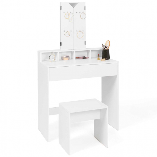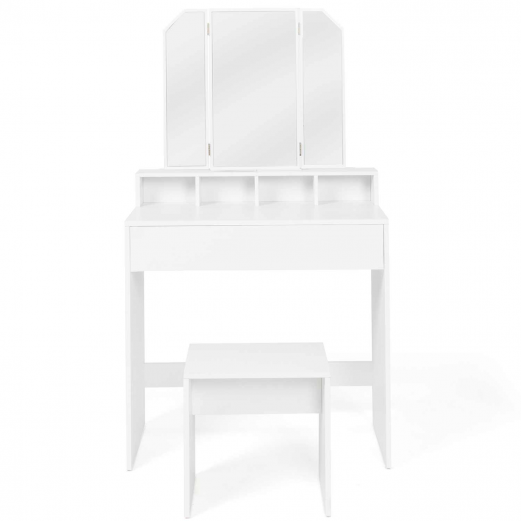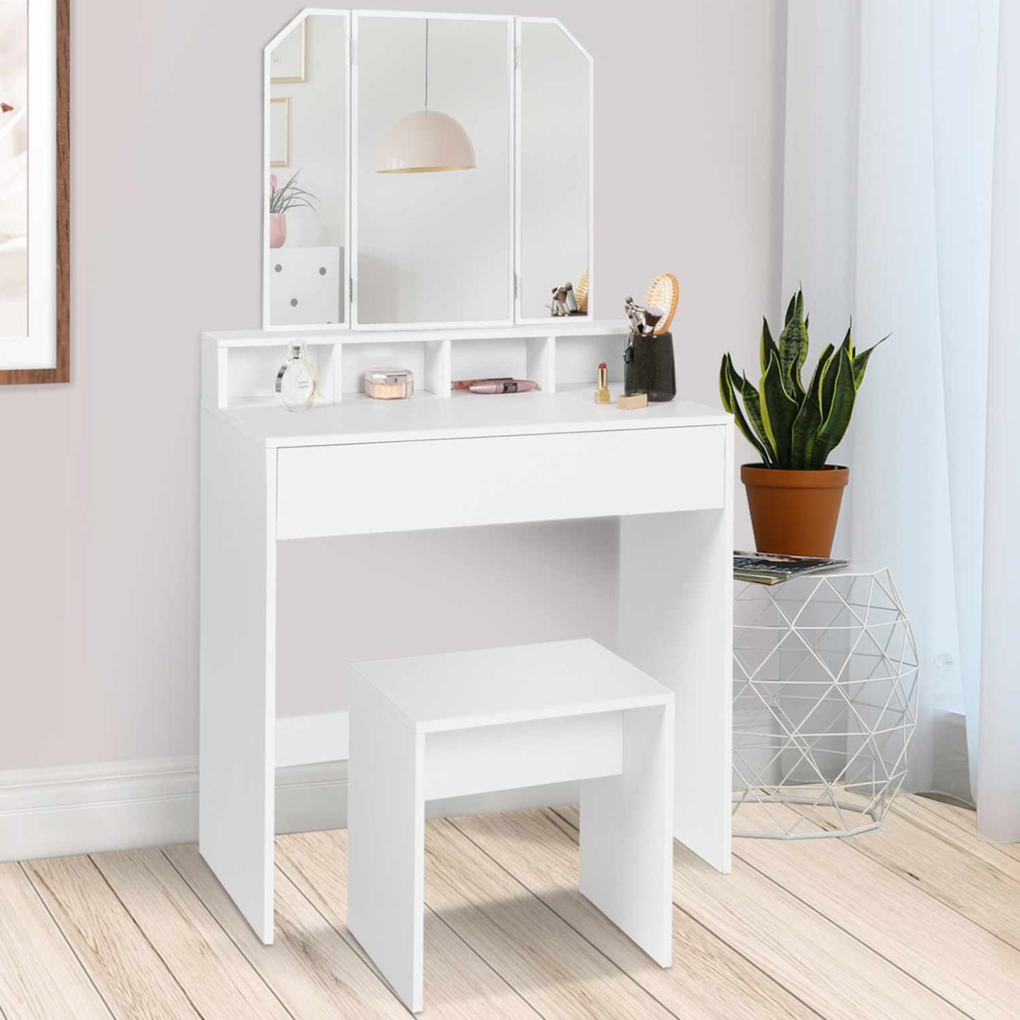 | Libellé | IDMARKET Coiffeuse ZELIA 3 miroirs avec 4 niches, 1 tiroir et tabouret |