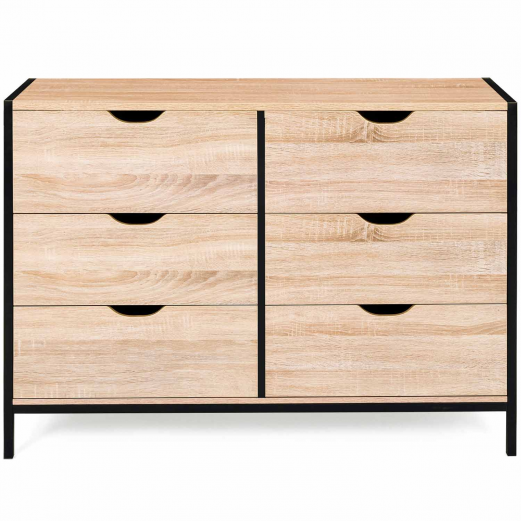 Optez pour la commode 6 tiroirs DETROIT style industriel bi-matière bois et métal !Sa maxi capacité de rangement vous permettra d'organiser tous vos vêtements et d'y ranger même les linges plus volumineux.Ses pieds métalliques offrent une parfaite stabilité et robustesse et son design "factory" s'intègrera à n'importe quel type d'agencement d'intérieur !Son look industriel et ses lignes sobres apporteront à votre chambre, dressing, ou même bureau, pour un esprit très "loft new yorkais" !Ses 6 grands tiroirs d'une hauteur de 19 CM vous permettront de conserver votre garde-robe parfaitement rangée et organisée à l'abri de la poussière et de l'humidité. Pour une déco plus personnalisée et une atmosphère chaleureuse, libre à vous d'installer sur le plateau supérieur un luminaire, un miroir ou mêmes des plantes vertes.A la fois pratique et décorative, cette commode sera idéale pour organiser et ranger tous vos vêtements ! Vous n'aurez plus d'excuses pour laisser traîner vos affaires !Dimensions de la commode style industriel 6 tiroirs- Dimensions globales : Longueur 115 CM x largeur 39 CM x Hauteur 75 CM- Façades tiroirs : Longueur 54.5 x hauteur 19.5 CM- Matériaux : Particules de bois 15 MM- Tubes en métal : 1.6 x 1.6 CM- Hauteur des pieds : 11.6 CM- À monter soi-mêmeRetrouvez également nos autres modèles de commodes DETROIT :- Commode 3 tiroirs DETROIT design industriel- Commode 2 tiroirs DETROIT design industriel avec étagère- Commode 4 tiroirs DETROIT design industriel avec étagèreDécouvrez l'ensemble de notre collection DETROIT sur notre boutique en ligne.