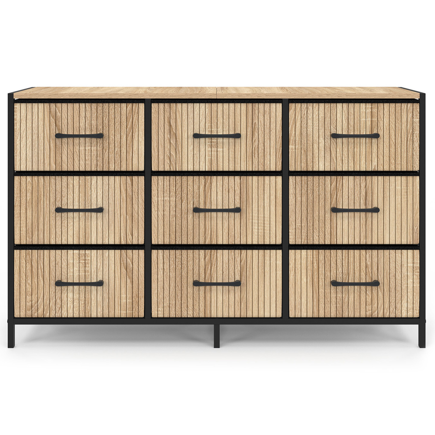 IDMARKET Commode 9 tiroirs en tissu UTAH effet lattes meuble de rangement design industriel