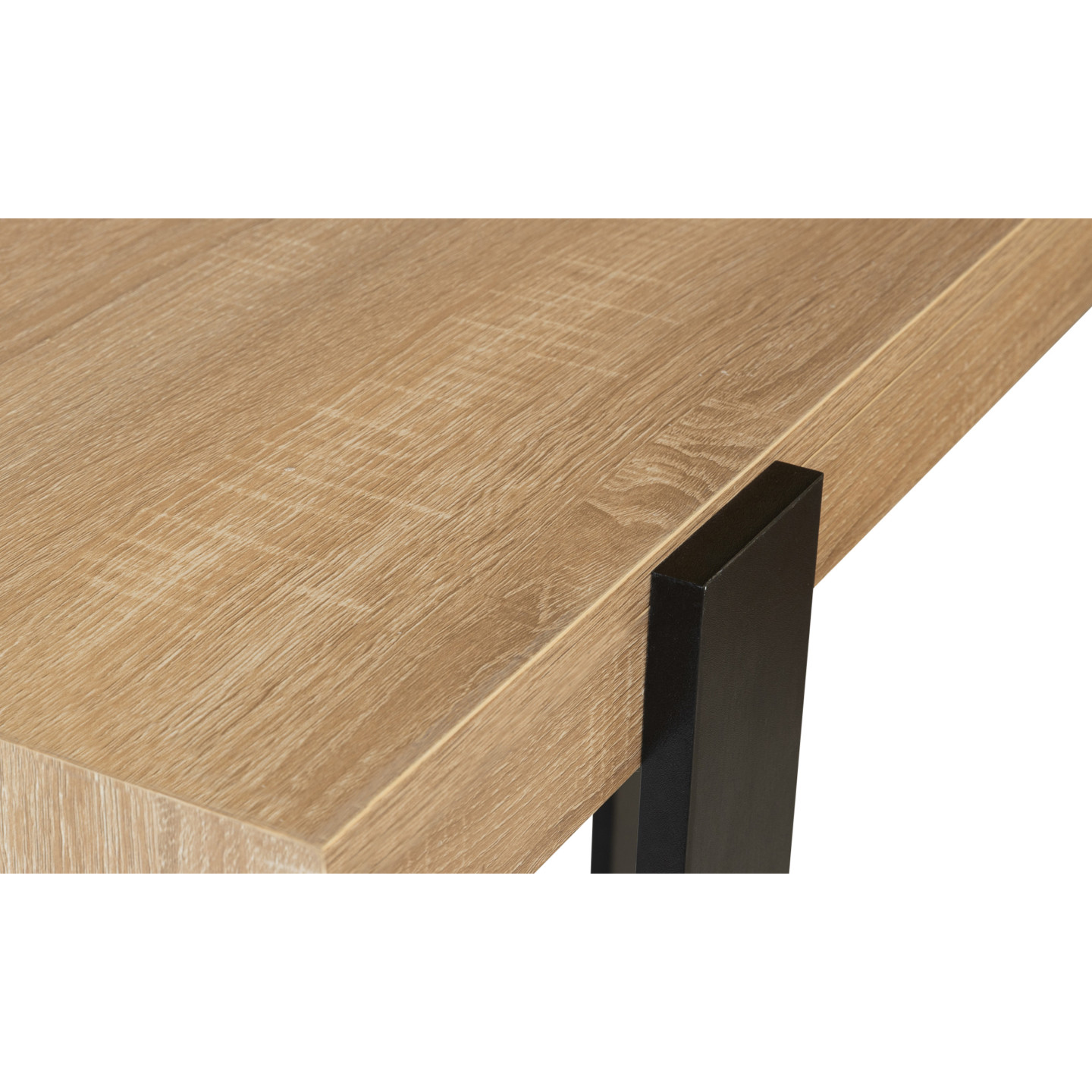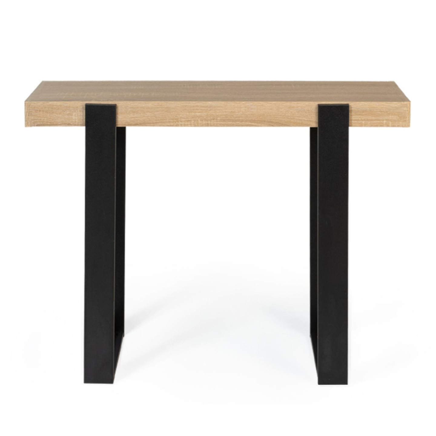 Le style moderne, contemporain et les lignes sobres de la table-console offriront à votre entrée, chambre, bureau ou salon un esprit loft ! De quoi réaliser une ambiance cosy et tendance !Esthétique, cette jolie console PHOENIX bois et noir trouvera idéalement sa place dans les intérieurs urbains et contemporains, mais aussi plus rustiques.Les dimensions généreuses du plateau (Longueur 100 cm) sont spécialement conçues pour vous permettre d'y disposer tablette, lampe d'appoint, et de mettre en valeur déco et petite plante verte.La structure du meuble épaisseur 1,5 cm lui apporte une vraie stabilité et une véritable solidité. Avec ses pieds larges reliés entre eux, ce meuble ultra design vous propose robustesse et qualité pour accueillir votre décoration.Ses formes simples et symétriques apportent un esprit atelier à votre pièce. Son design sobre, ses couleurs naturelles et passe-partout lui permettront de s'intégrer dans n'importe quel intérieur sans le surcharger. Ambiance chaleureuse garantie !Sa structure à l'aspect massif est idéale pour un salon cossu. L'association des pieds noirs et du plateau en bois donne un effet bi-matière et apporte modernité et tendance dans votre intérieur.Multifonction, elle pourra aussi faire office de meuble d'entrée pour y disposer vos objets de déco, surplombée ou non d'un joli miroir.Pratique et déco, elle apporte une réelle valeur ajoutée à votre entrée ou séjour en les décorant et en les meublant en toute simplicité !Sublimez dès maintenant votre intérieur avec ses matériaux effet bi-matière, ses formes simples pour look authentique !Dimensions de la console PHOENIX design industrielDimensions globales : Longueur 100 cm x largeur 33 cm x Hauteur 75 cmÉpaisseur du plateau bois : 6,5 cmEspace entre les pieds : 53,5 cmMatériaux : particules de bois (PB)Charge supportée : 30 kgÀ monter soi-mêmeDécouvrez toute notre collection PHOENIX sur notre site internet !