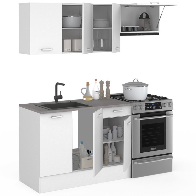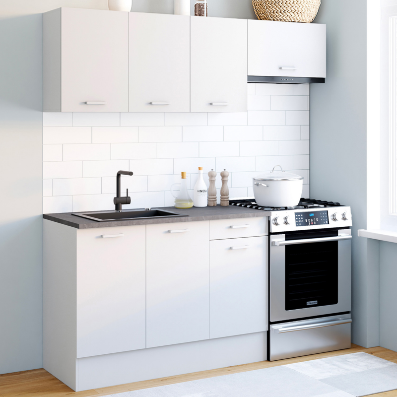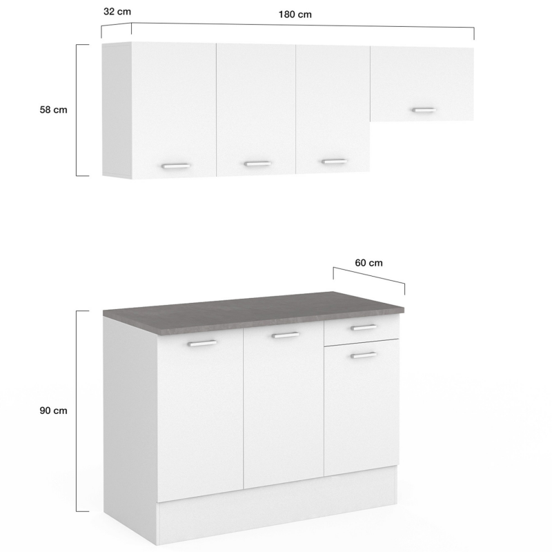 | Libellé | IDMARKET Cuisine complète 180 cm SUBTIL avec plan de travail 5 éléments blanc et plateaux béton |