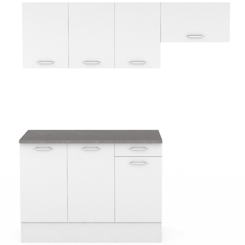 IDMARKET Cuisine complète 180 cm SUBTIL avec plan de travail 5 éléments blanc et plateaux béton