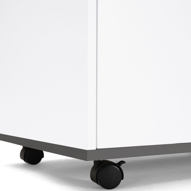 Découvrez notre desserte de cuisine COSY avec tiroir au design blanc et plateaux gris. Grâce à son grand placard et son tiroir, organisez tous vos condiments et denrées périssables, tout en les gardant à portée de main grâce à ses 4 roulettes directionnelles.Composée d'un large placard, empilez toute votre vaisselle, torchons, conserves ou produits d'entretien dans cet espace fermé, très pratique pour dissimuler votre petit bazar de cuisine. Ses multifonctions ne s'arrêtent pas là : au-dessus du placard, vous trouverez un tiroir, idéal pour y entreposer vos couverts et autres ustensiles de cuisine. Son large plateau sur le dessus, vous permettra de cuisiner ou continuer votre rangement ou d'y déposer votre micro-ondes. Dotée de 4 roulettes directionnelles, vous pouvez la déplacer très facilement, tout en gardant à portée de main vos condiments pendant que vous cuisinez.Grâce à son côté bicolore blanc et gris, cette desserte apportera une touche contemporaine à votre cuisine et se mariera parfaitement avec votre décoration intérieure.Besoin de gagner de l'espace dans votre cuisine ? Laissez-vous séduire par cette desserte roulante, ultra design et fonctionnelle, qui ravivera votre déco intérieure en un tour de main !Dimensions de la desserte COSY tiroir bois blanc et plateaux grisDimensions globales : Longueur 60 cm x Profondeur 39.5 cm x Hauteur 85 cmDimensions intérieures du tiroir : L. 52 x P. 29 x H.14.3 cmDimensions intérieures du placard : L. 57 x P. 38 x H.59 cmÉtagère ajustable à l'intérieurPanneaux de particules 12 et 15 mmColoris : bois blanc et plateaux grisÀ monter soi-même (visserie incluse)Retrouvez l'ensemble de nos meubles et éléments de cuisine sur notre boutique en ligne !